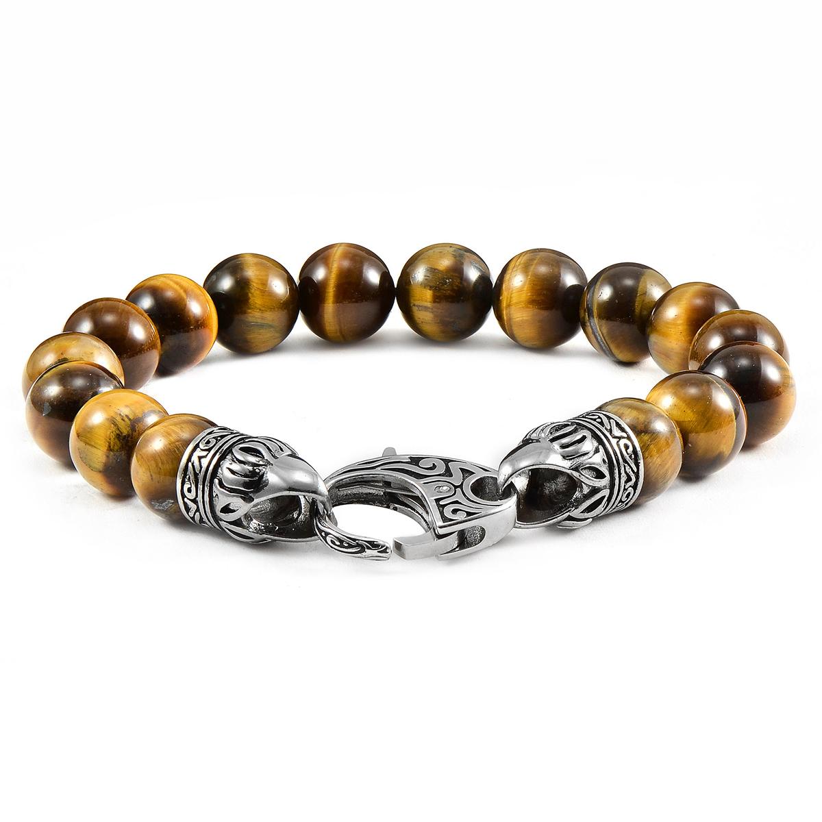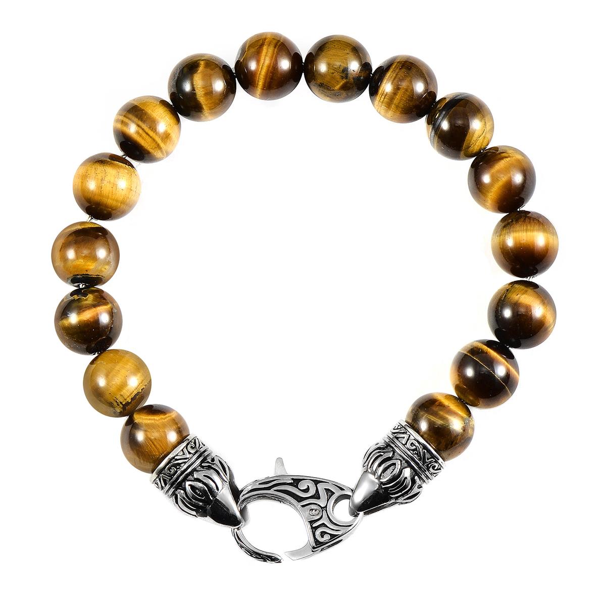 10mm Tiger Eye Bead Bracelet with Stainless Steel Antiqued Lobster Clasp
