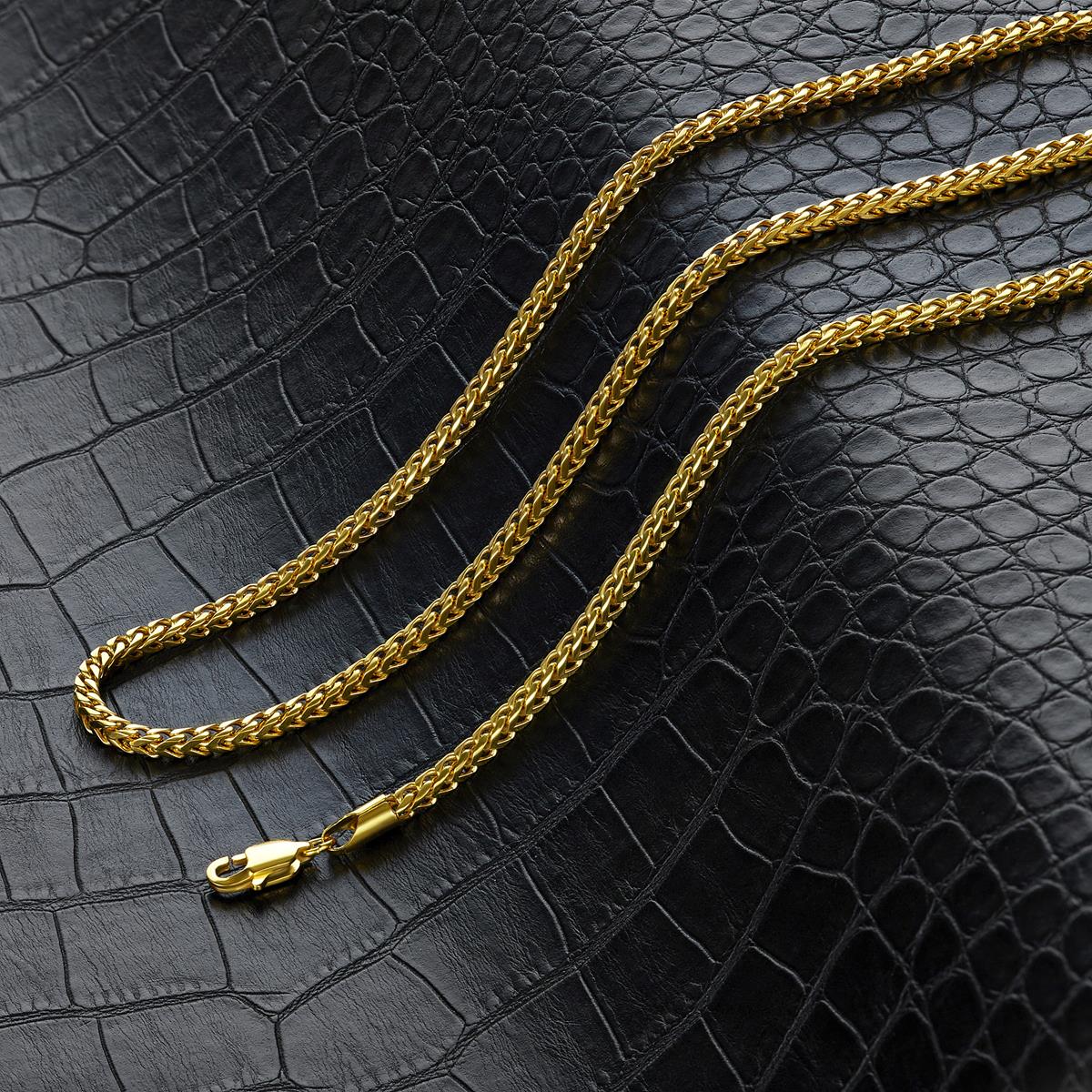 The polished Franco chain is crafted with durable stainless steel. This chain is the perfect accessory to wear for any occasion.