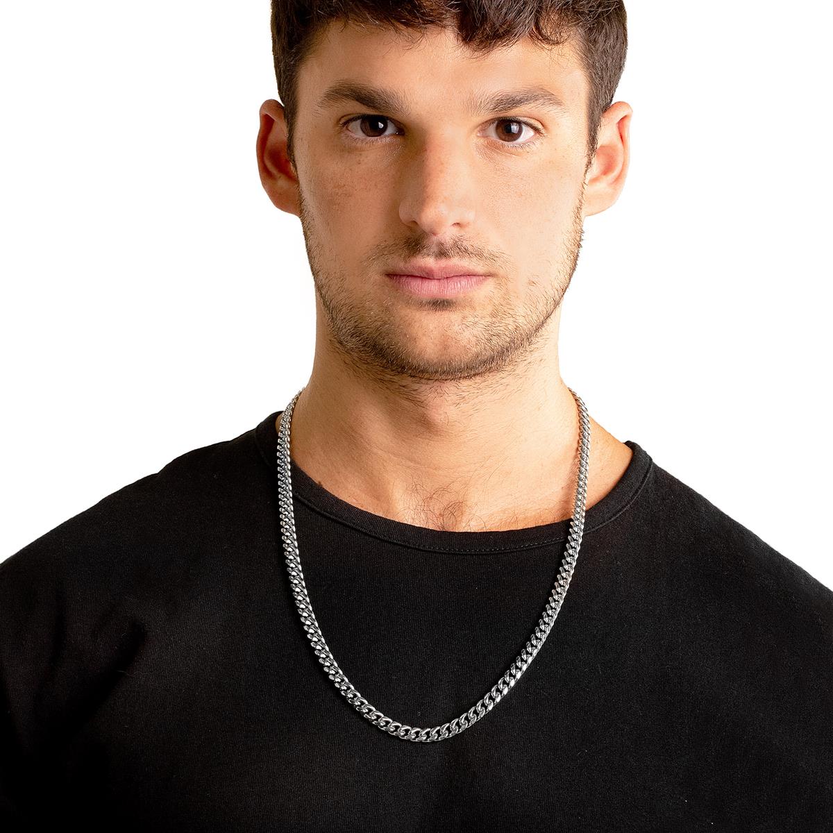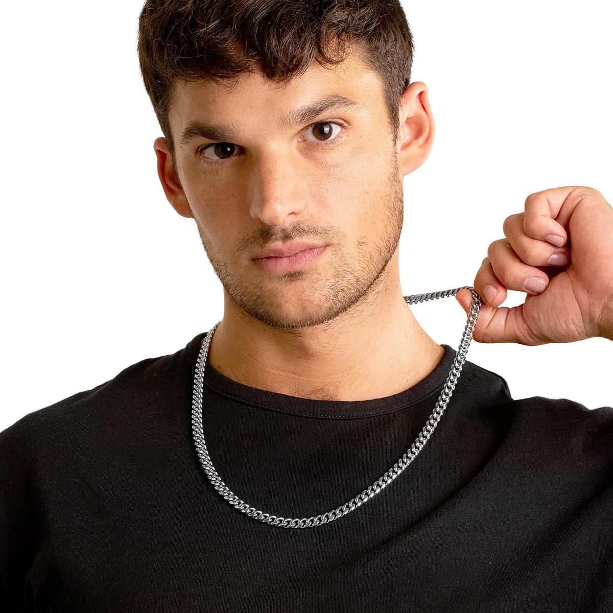 The polished Curb chain is crafted with durable stainless steel. The chain is the perfect jewelry accessory to wear for any occasion, whether it's something casual or a special night out.