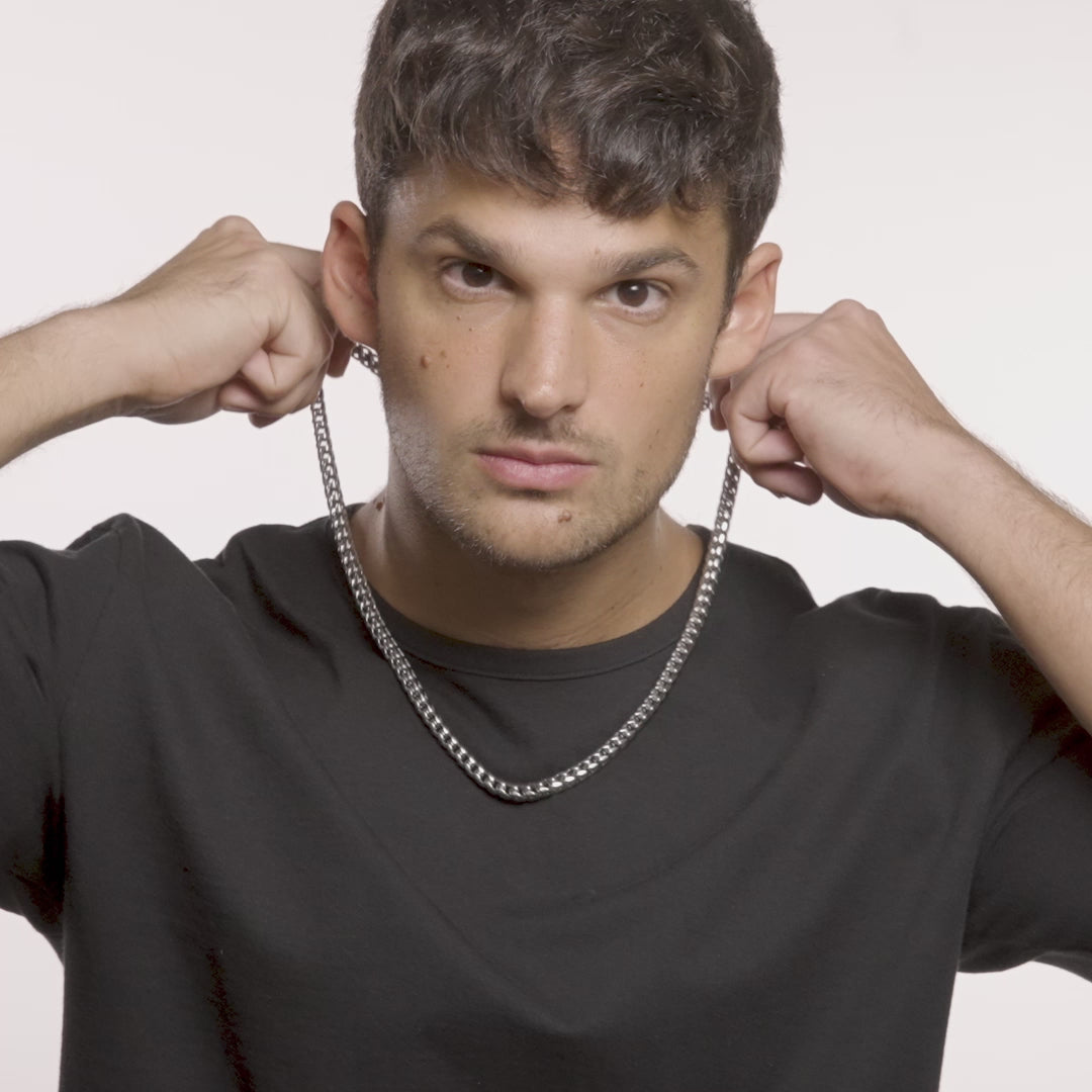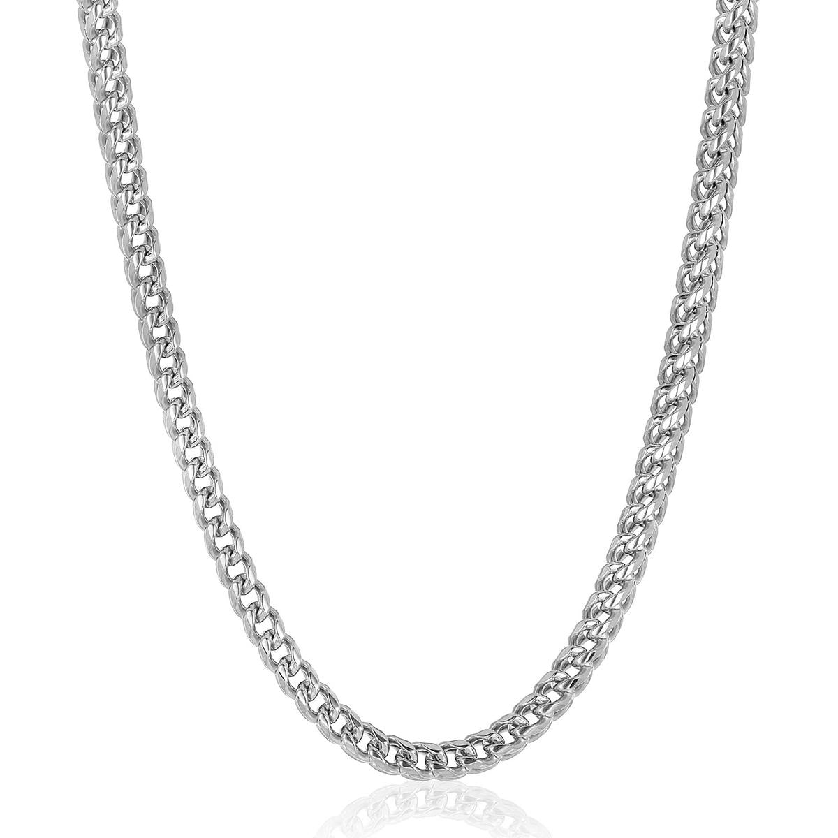 The polished Franco chain is crafted with durable stainless steel. The chain is the perfect jewelry accessory to wear for any occasion, whether it's something casual or a special night out.