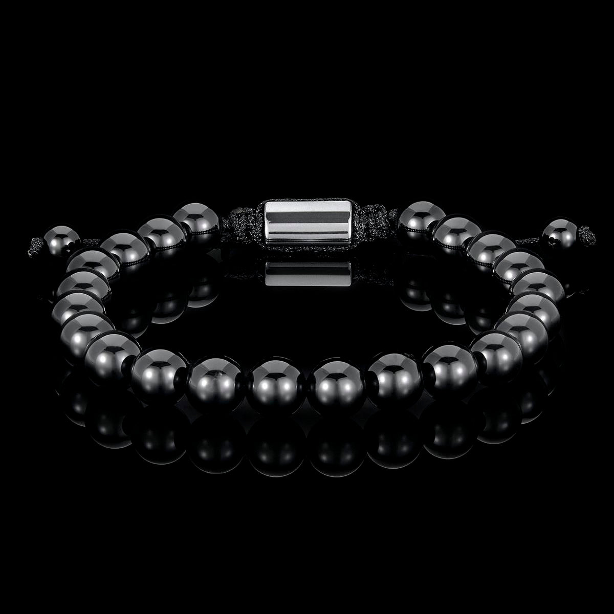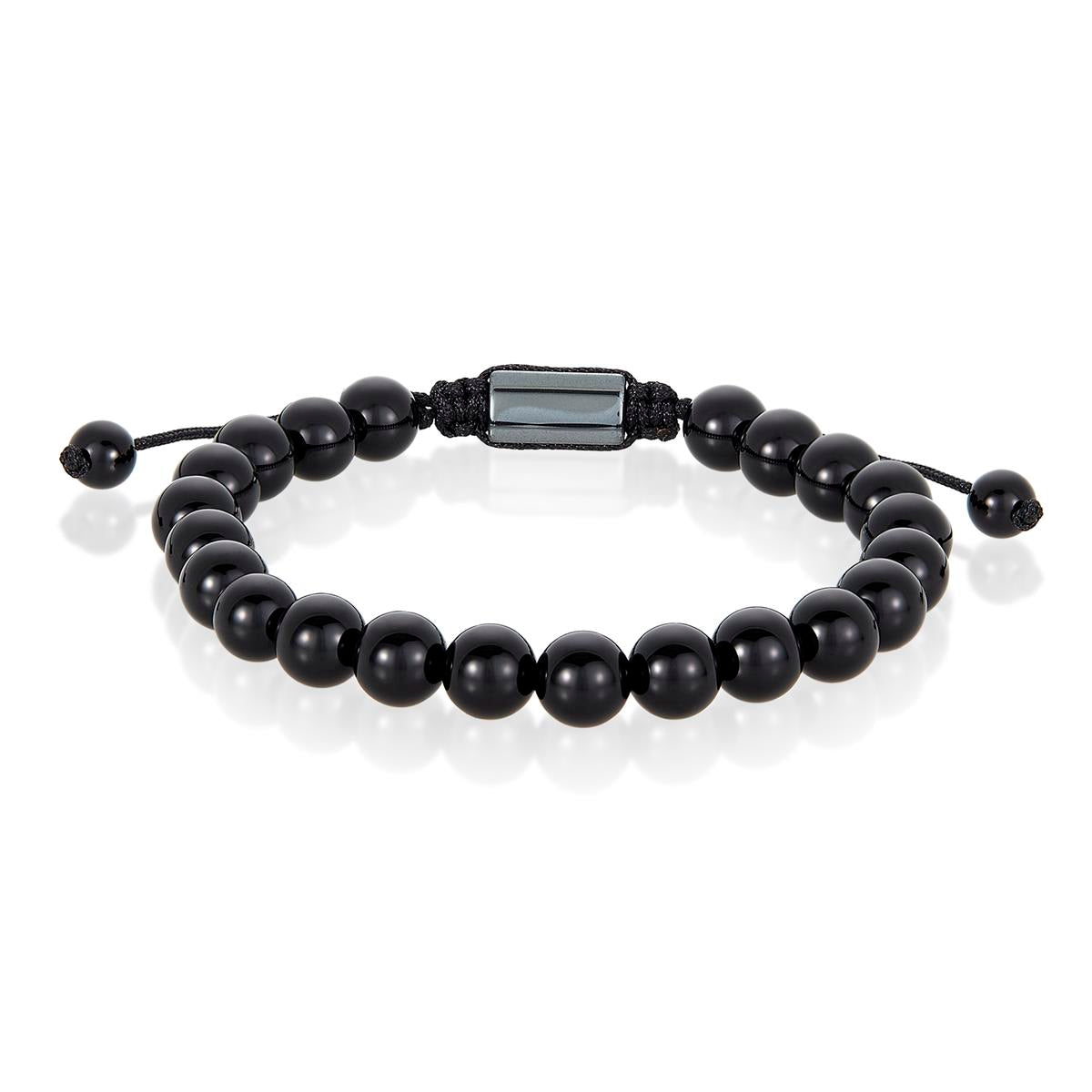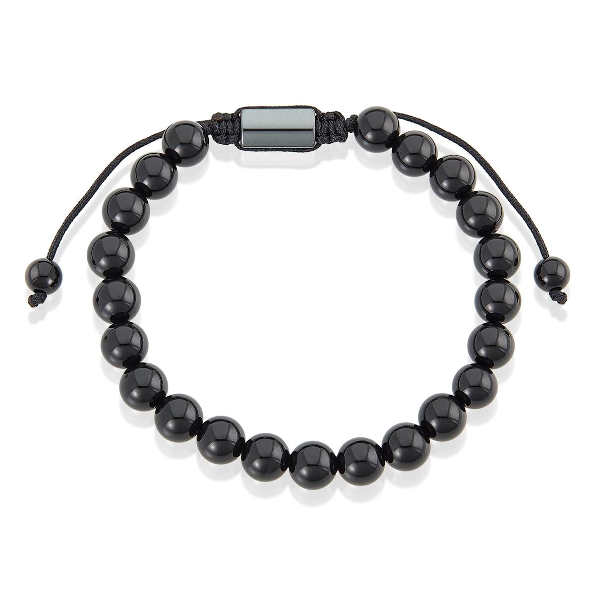 Men's Onyx Stone Bead Adjustable Shocker Tie Bracelet (8mm)