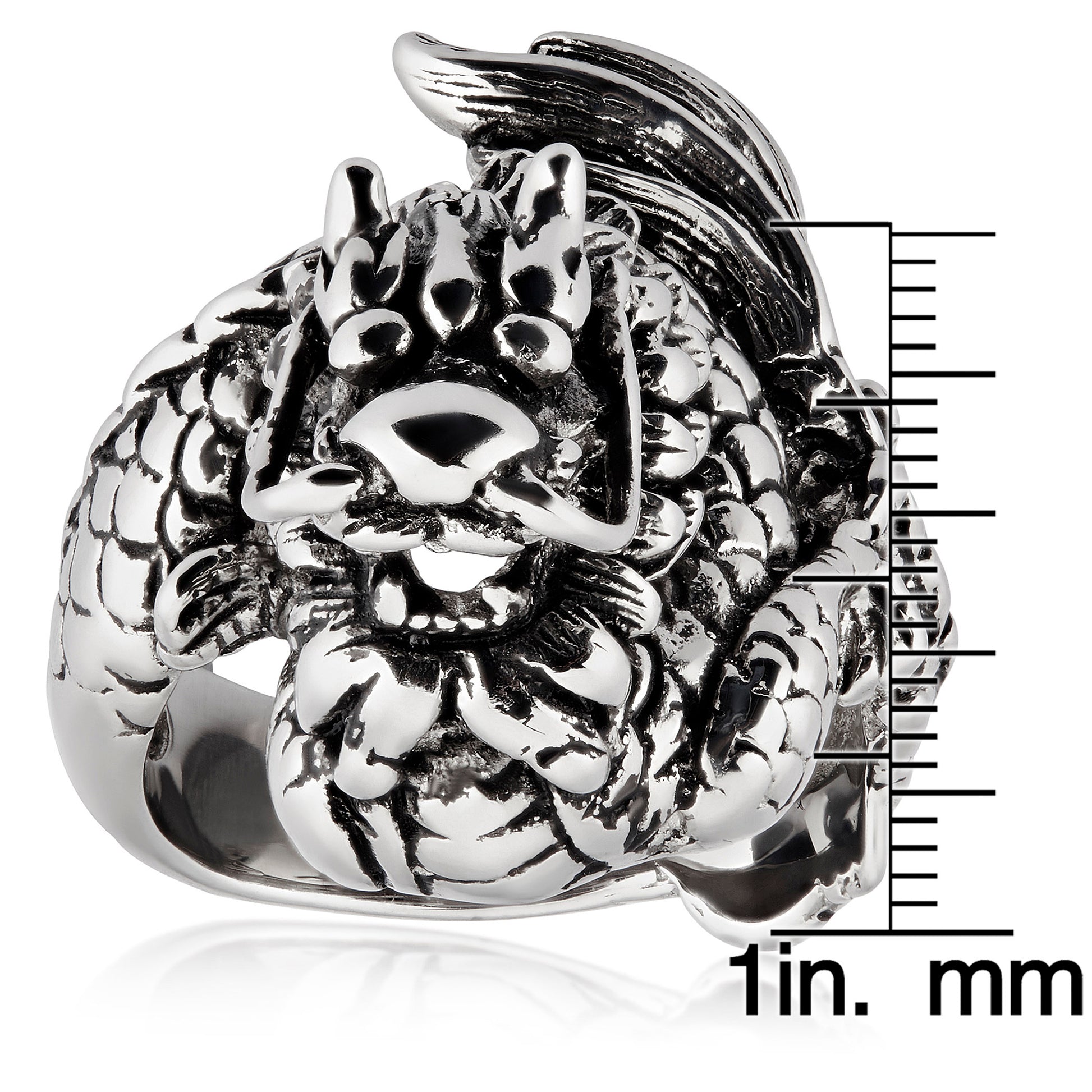 Men's Antiqued Finish Wrapped Dragon Stainless Steel Ring