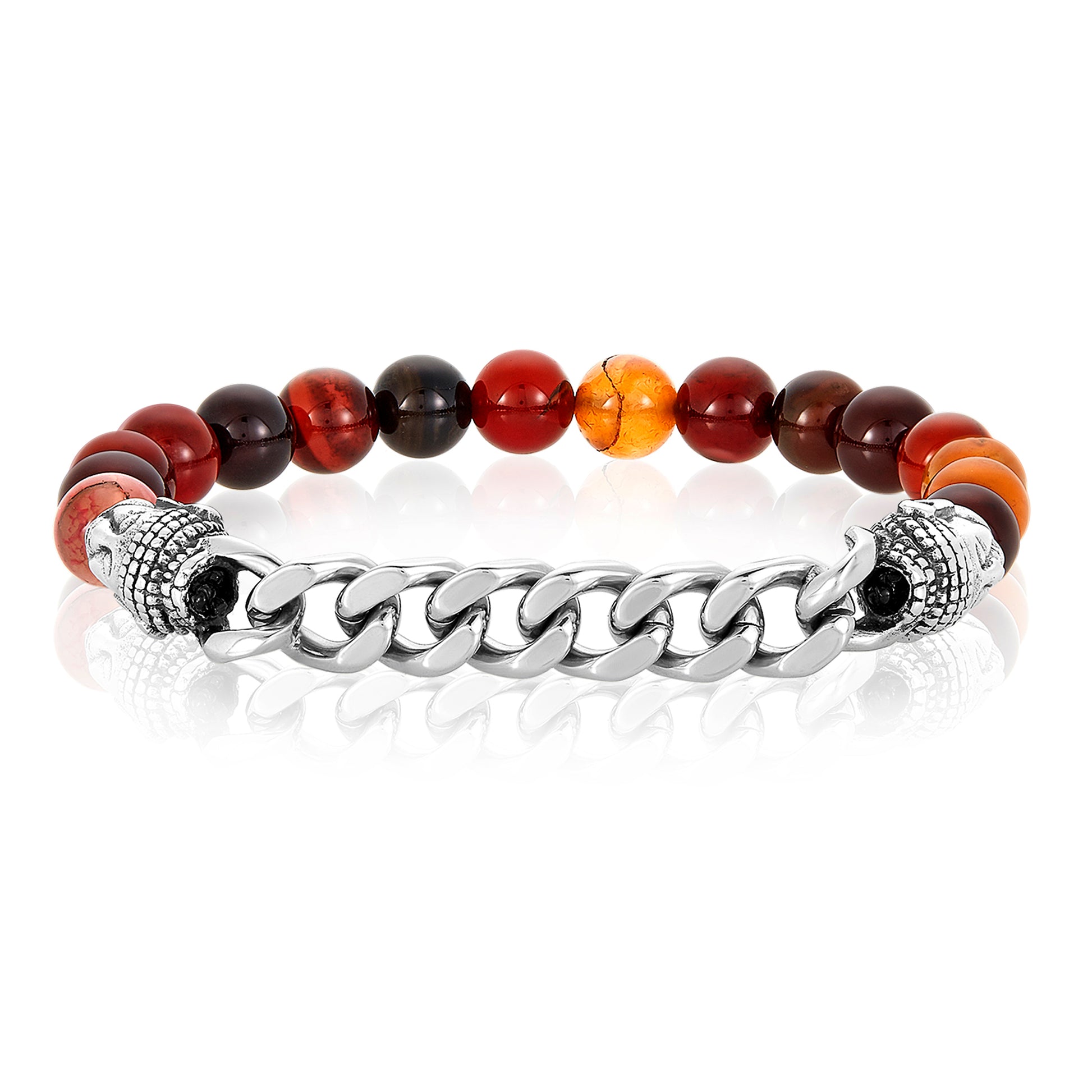 The stylish stone bracelet perfectly contrast the polished stainless steel curb chain.