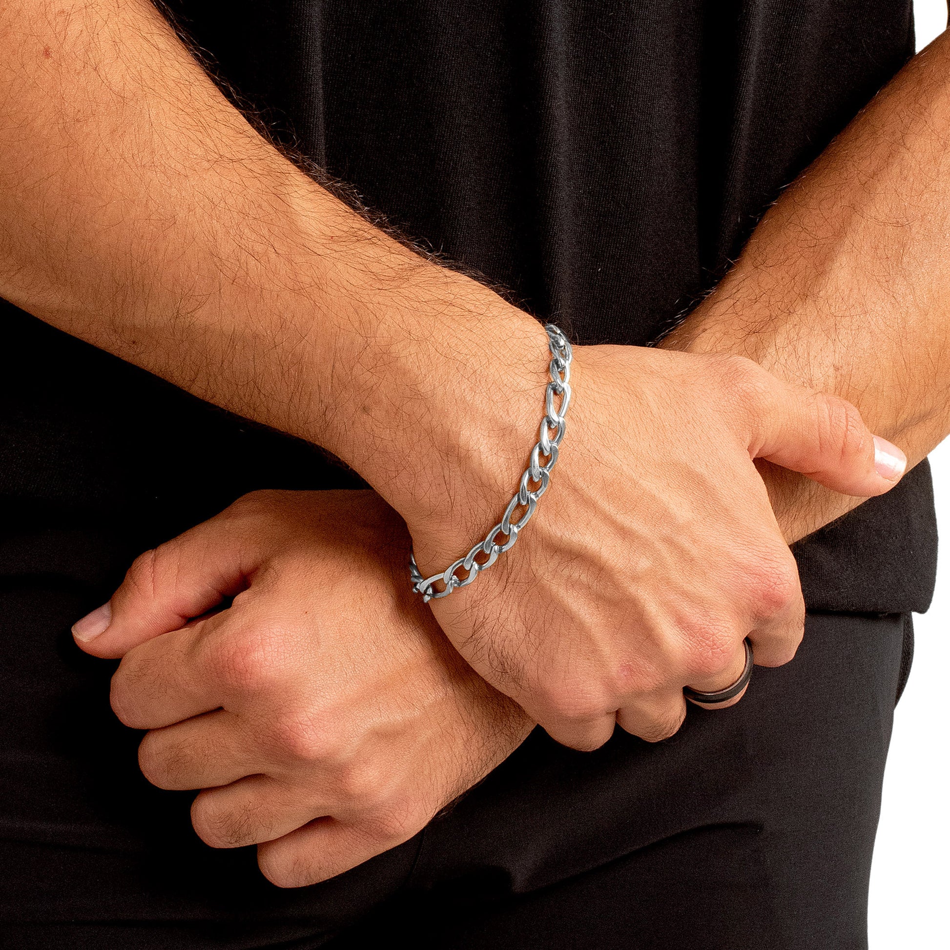 Add this stylish Figaro chain bracelet to your choice of daily wear.