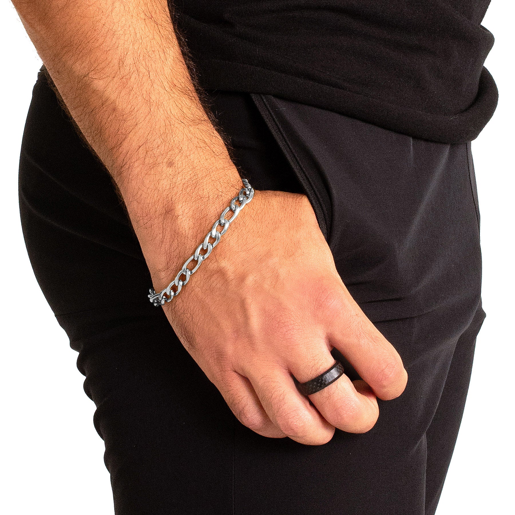 Crucible Men's Polished 8mm Figaro Chain Steel Bracelet - 8.25"