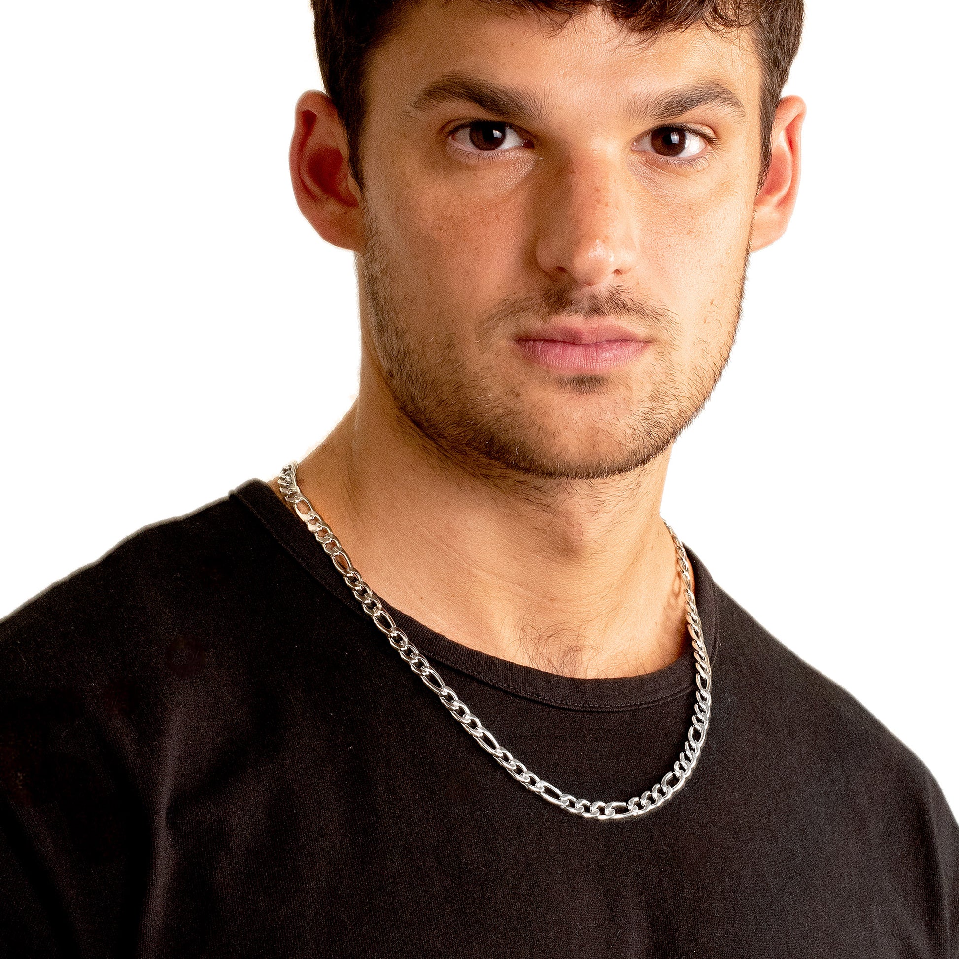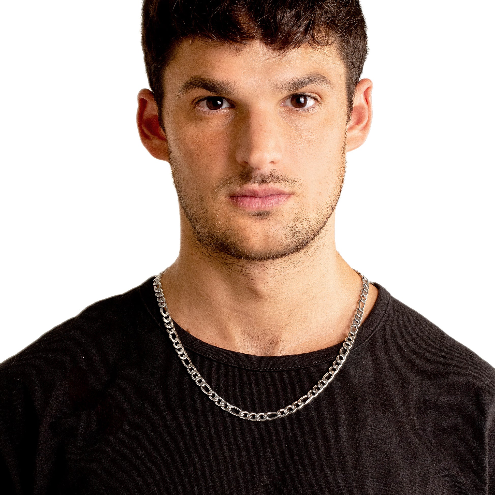 Men's Polished Figaro Chain Stainless Steel Necklace (7mm) - 24"