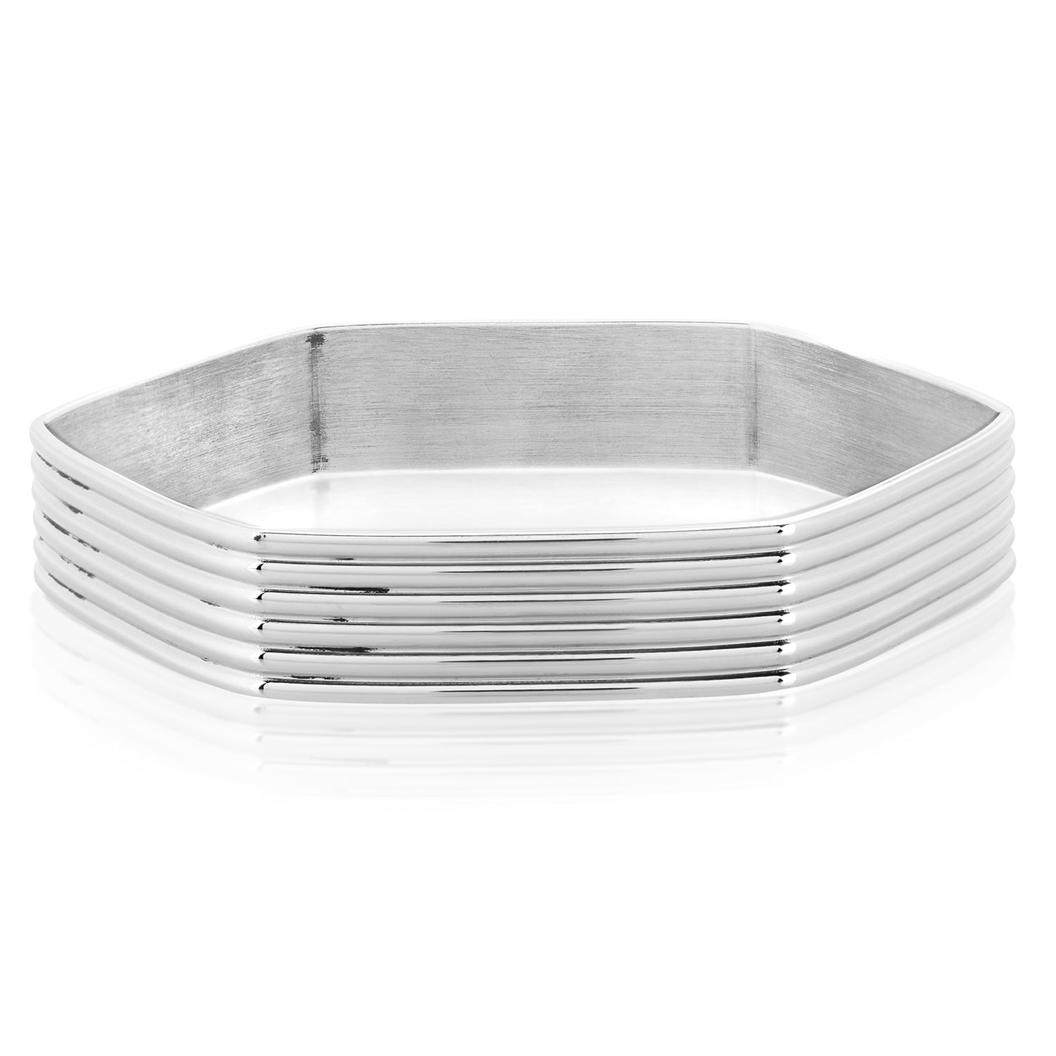 ELYA Women's Grooved Geometric Hexagon Stainless Steel Bangle Bracelet