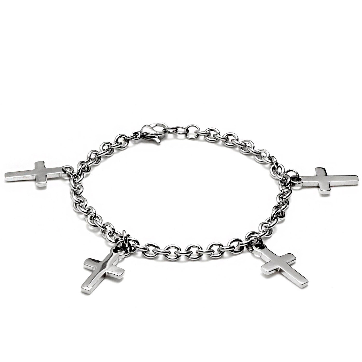 ELYA Polished Dangling Cross Charms Stainless Steel Bracelet - 7.5"