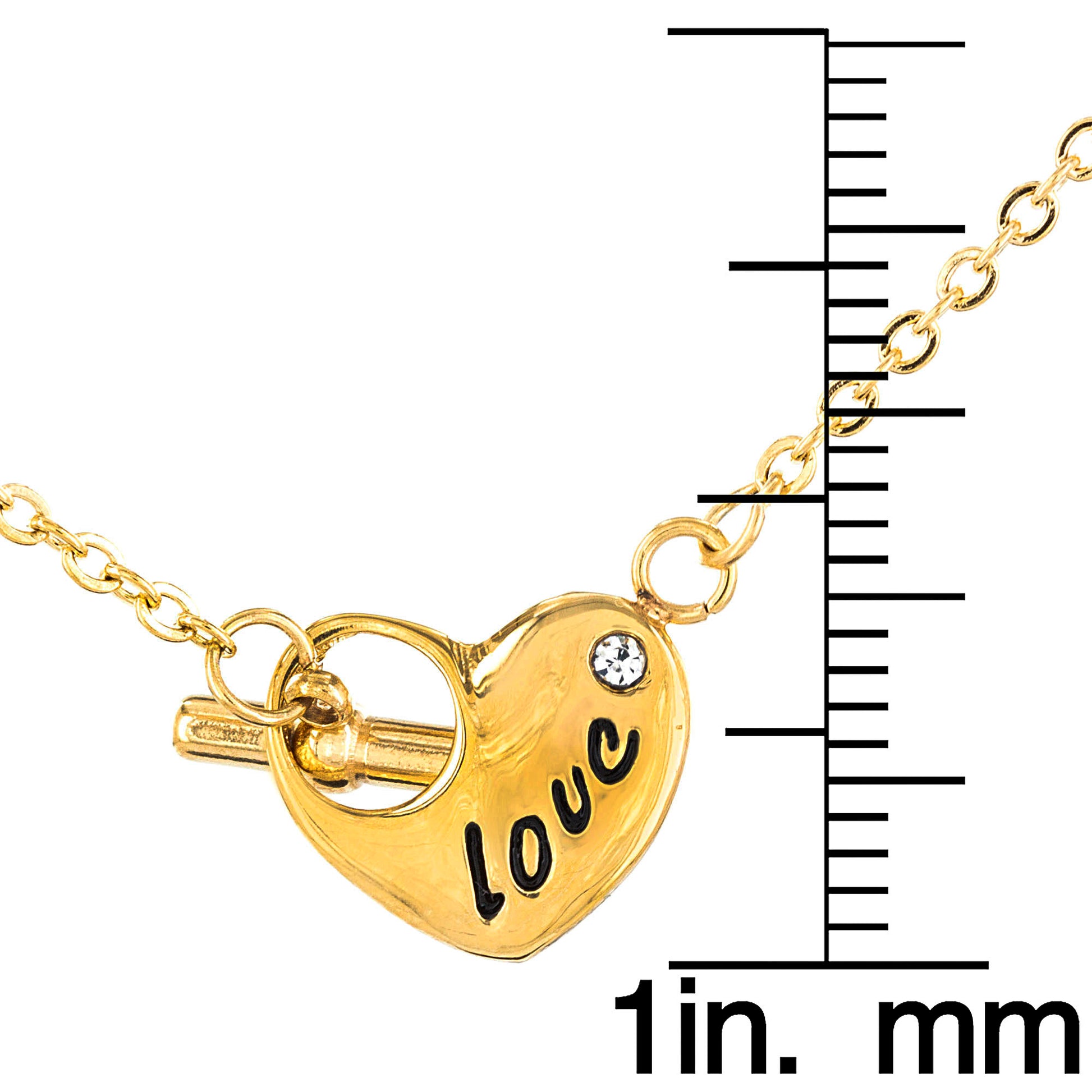 The polished finish gives this necklace an added shimmer that'll make any look sparkle. The heart piece is attached to cable chain strands. The piece is crafted with gold plated stainless steel. Get this meaningful piece for yourself or gift it to that special someone.
