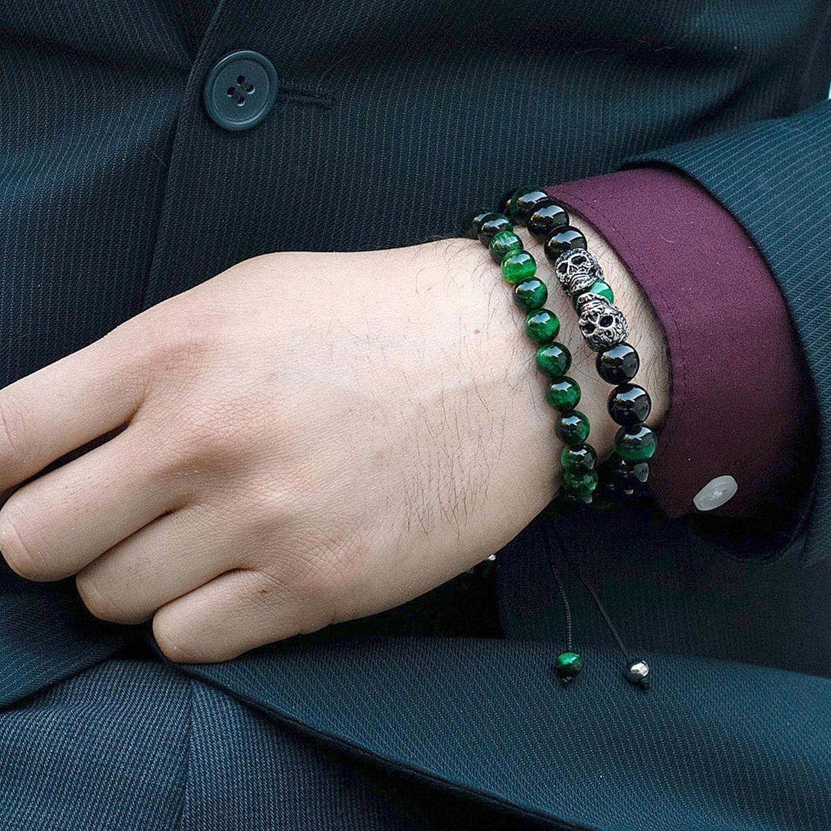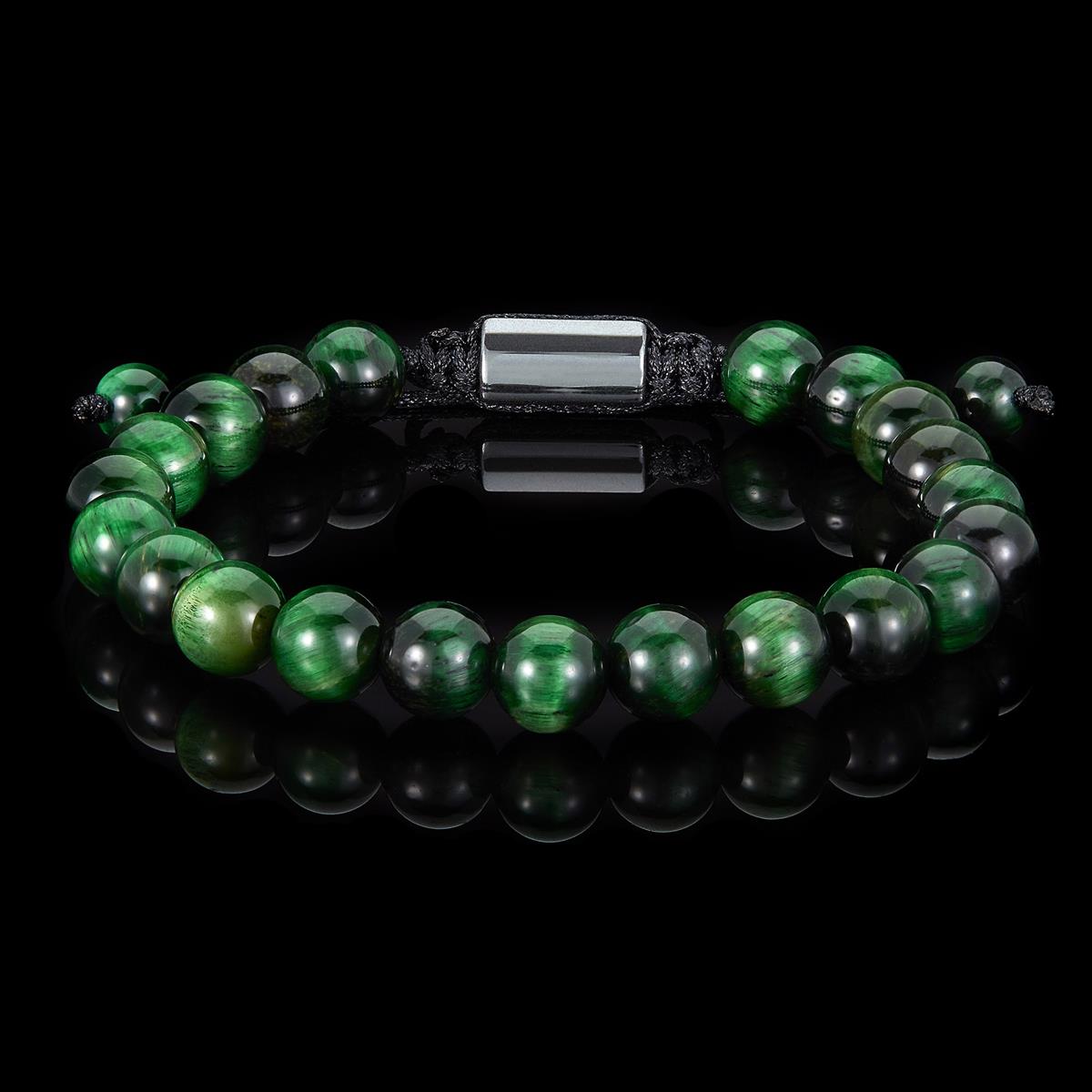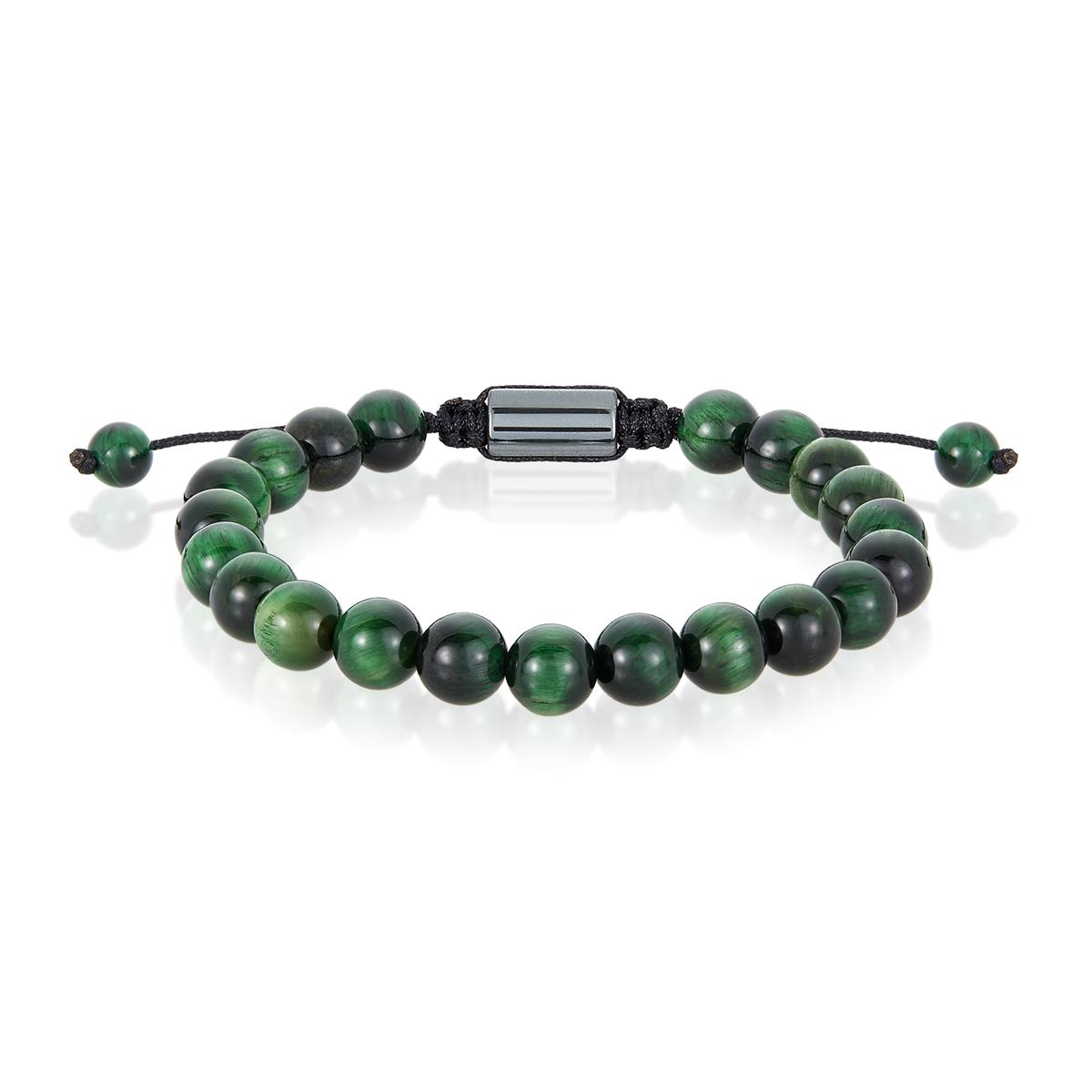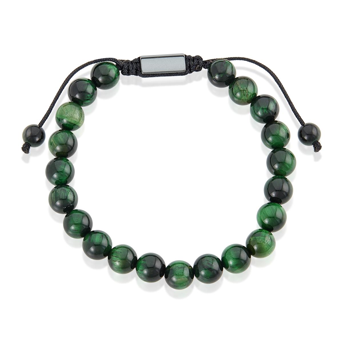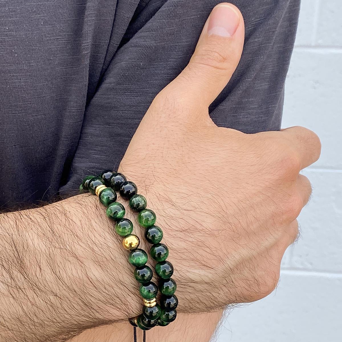 Men's Green Tiger Eye Stone Bead Adjustable Bracelet (8mm)