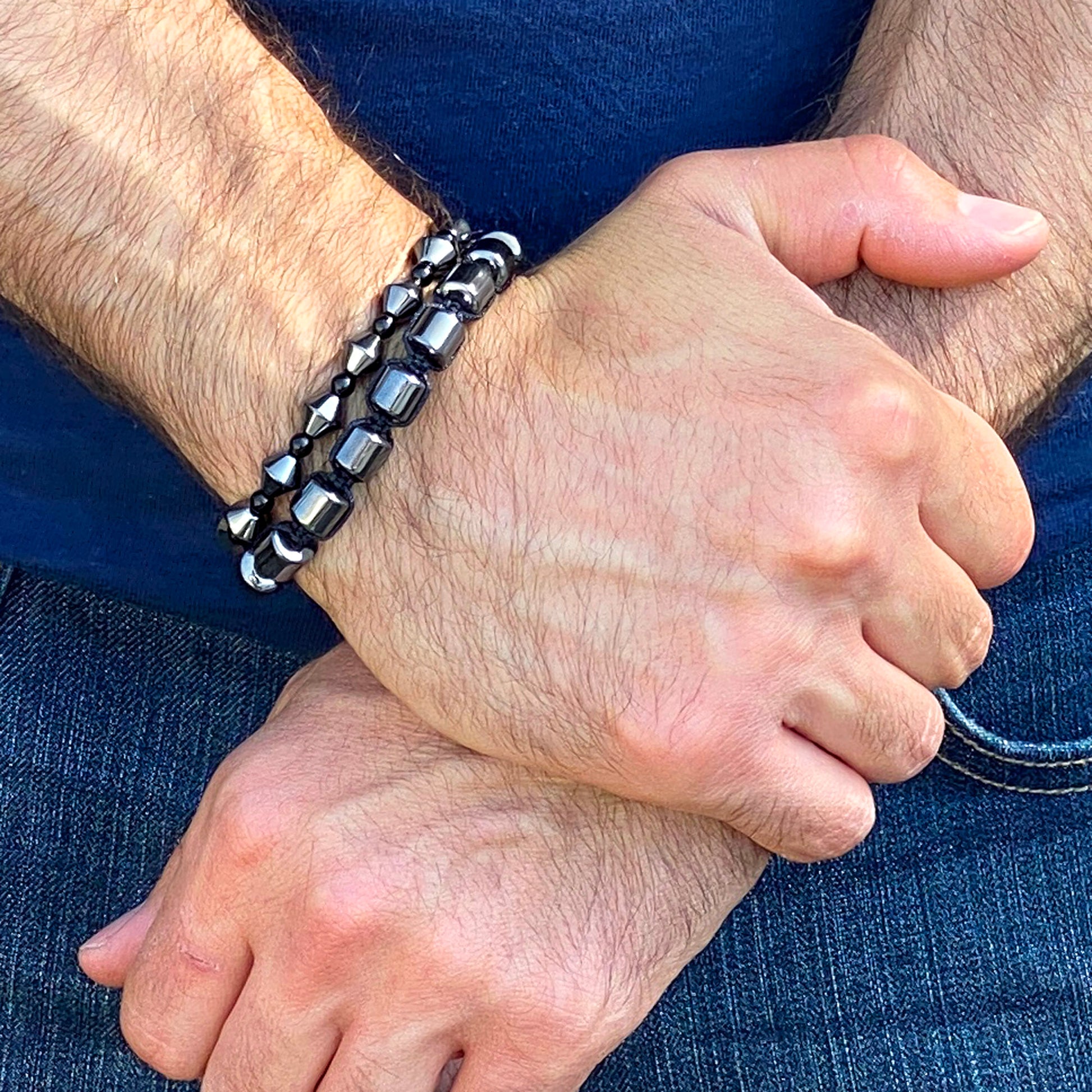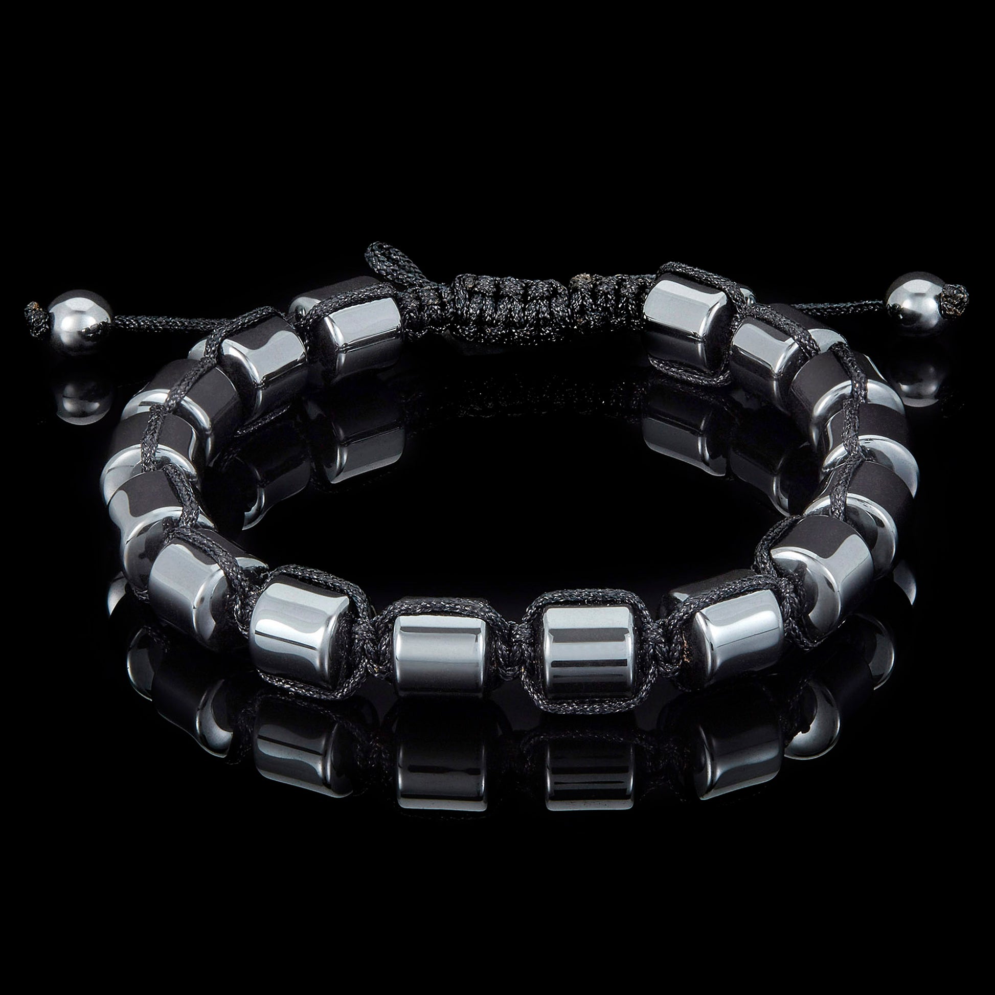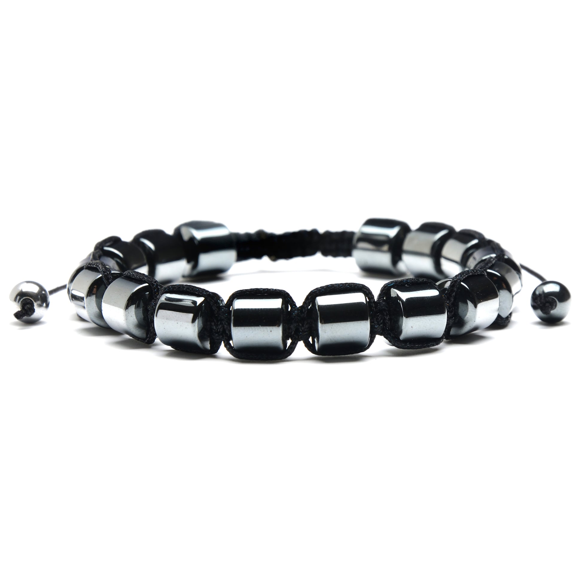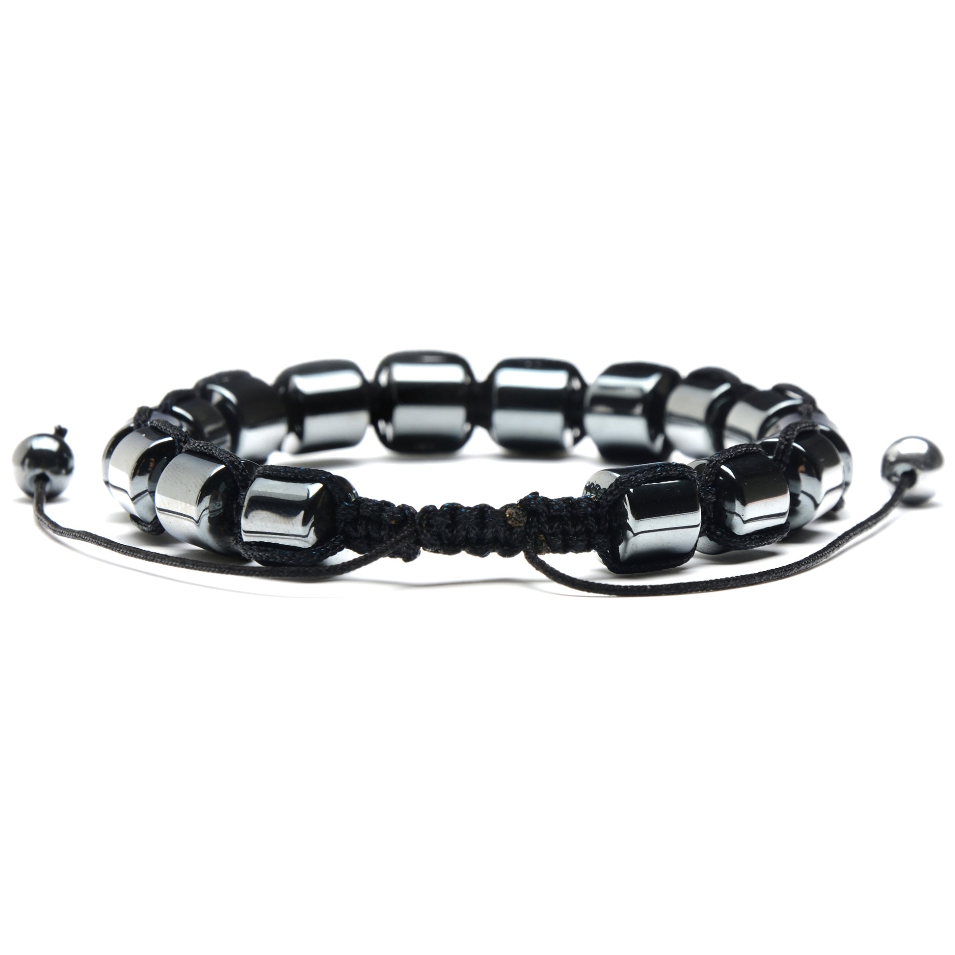 Wear this adjustable Hematite bracelet with any style. The Hematite stones have a barrel shape and a width of 8 millimeters.