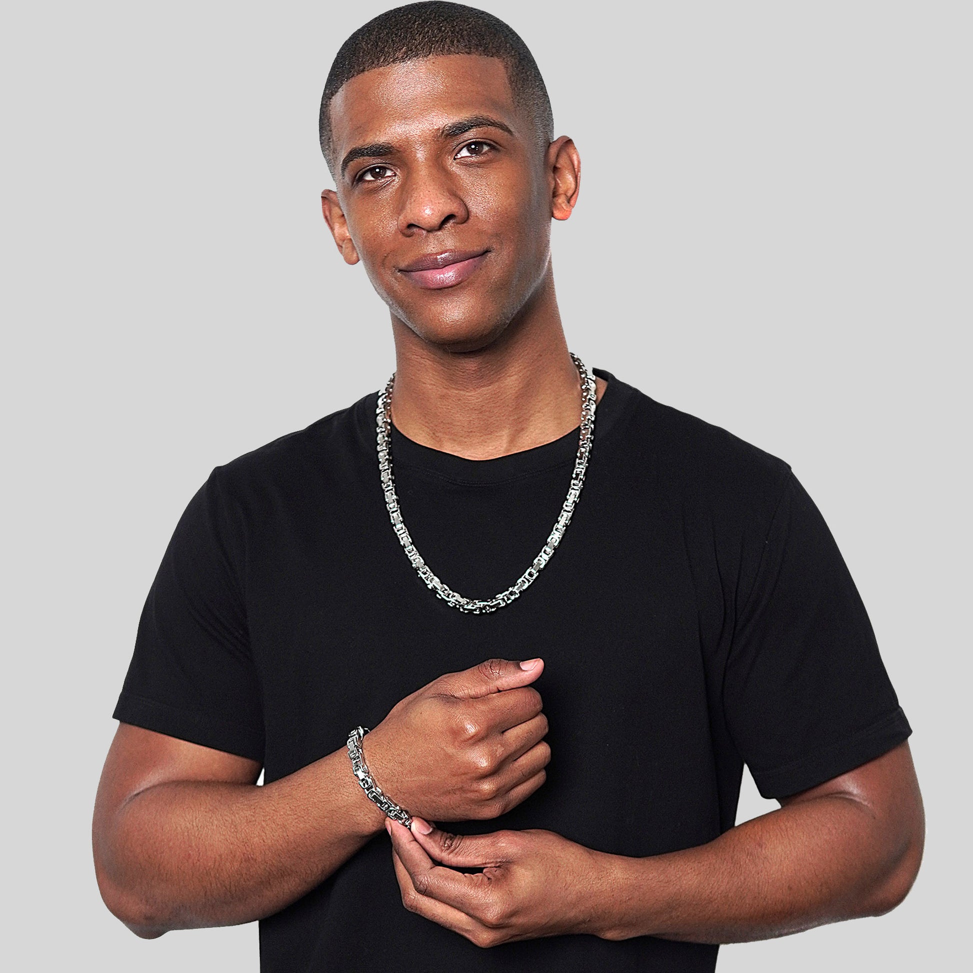 Invicta Jewelry Men's Byzantine Chain Bracelet and Necklace Set