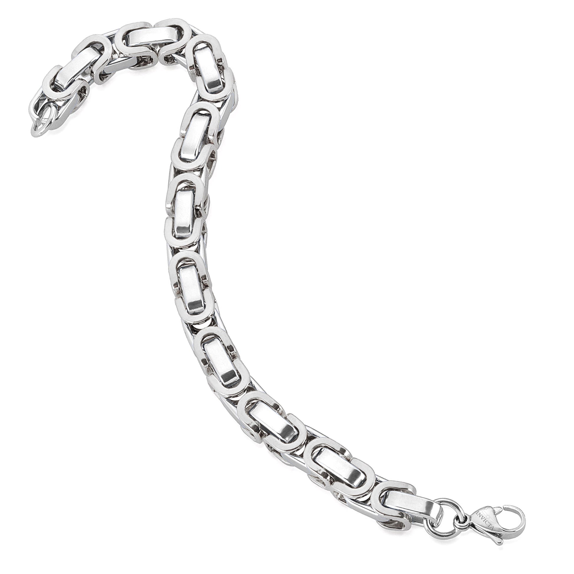 Men's Polished Byzantine Chain Stainless Steel Bracelet and Necklace Set (8mm)