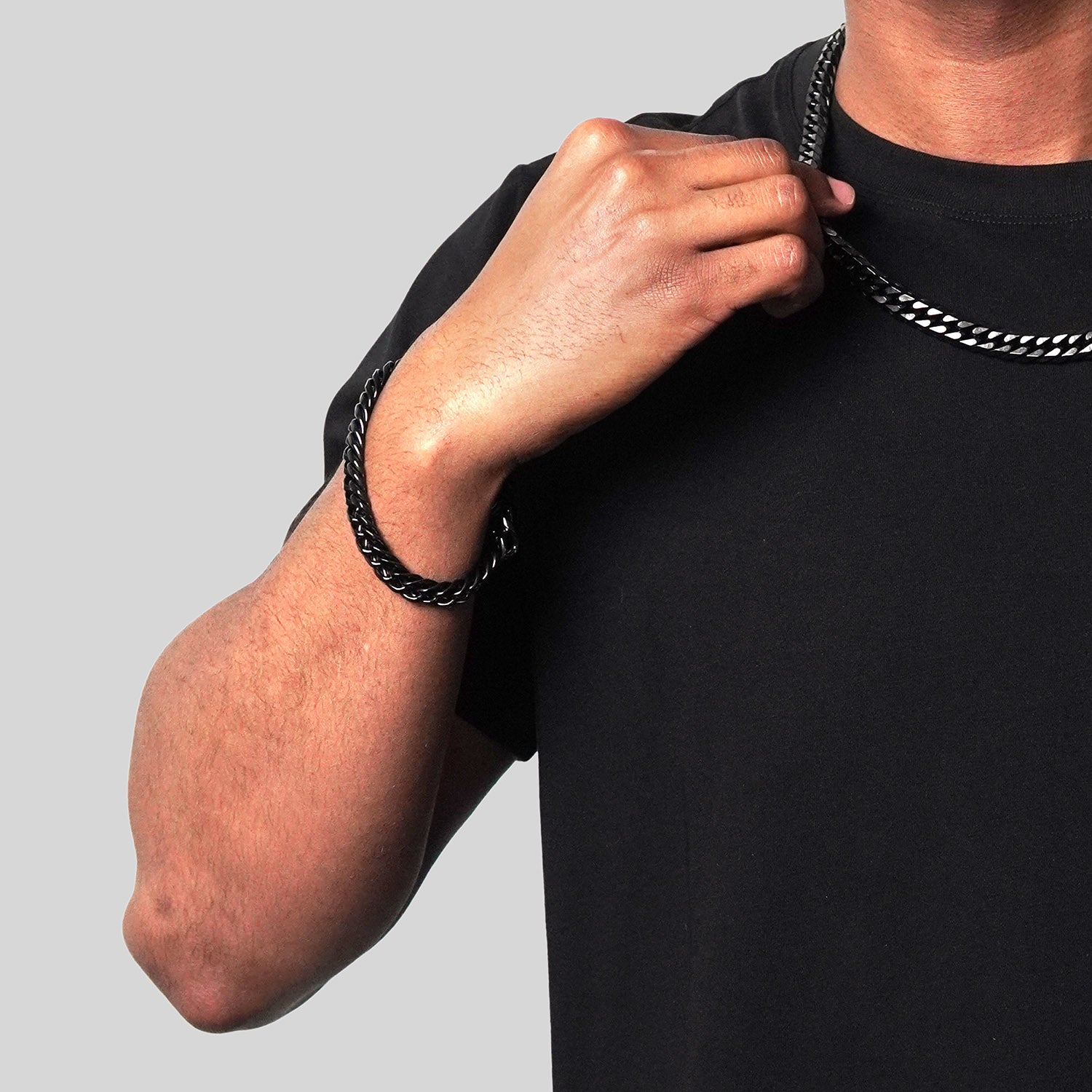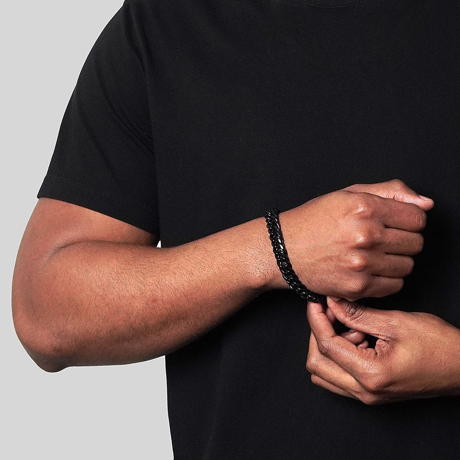 Invicta Jewelry Men's Double Curb Chain Black Steel Bracelet