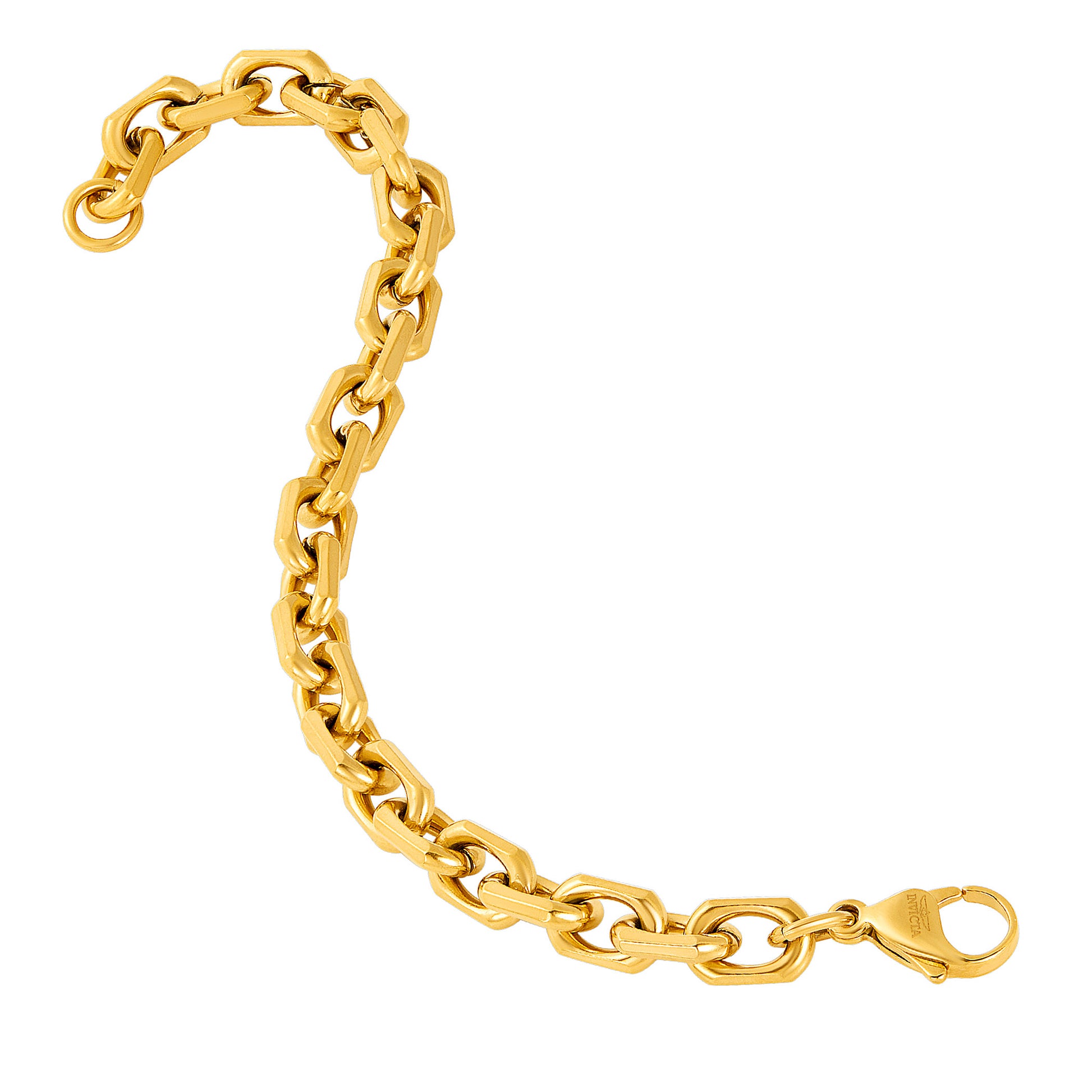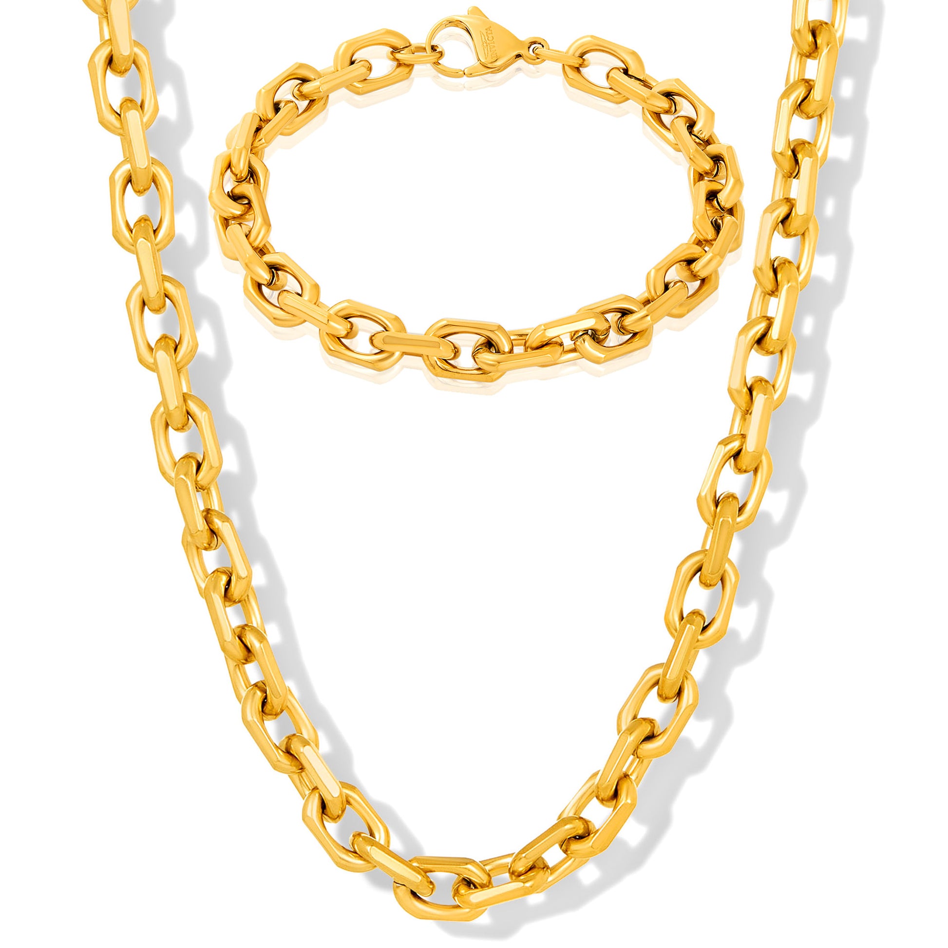Invicta Jewelry Men's Beveled Edge Rectangular Link Gold Bracelet and Necklace Set