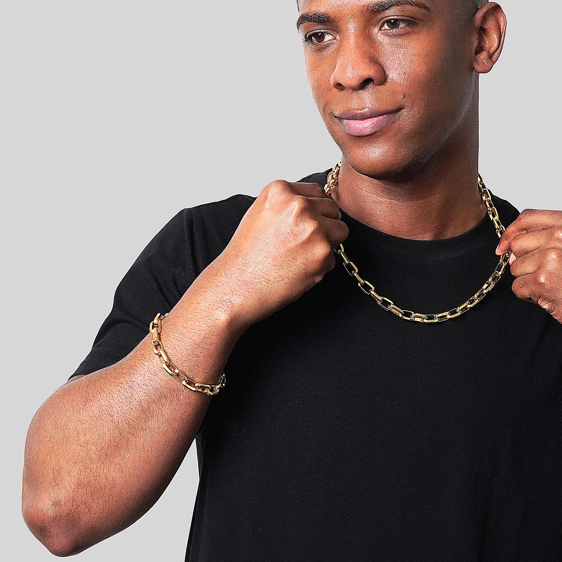 Invicta Jewelry Men's Beveled Edge Large Nautical Oval Gold Link Chain Bracelet