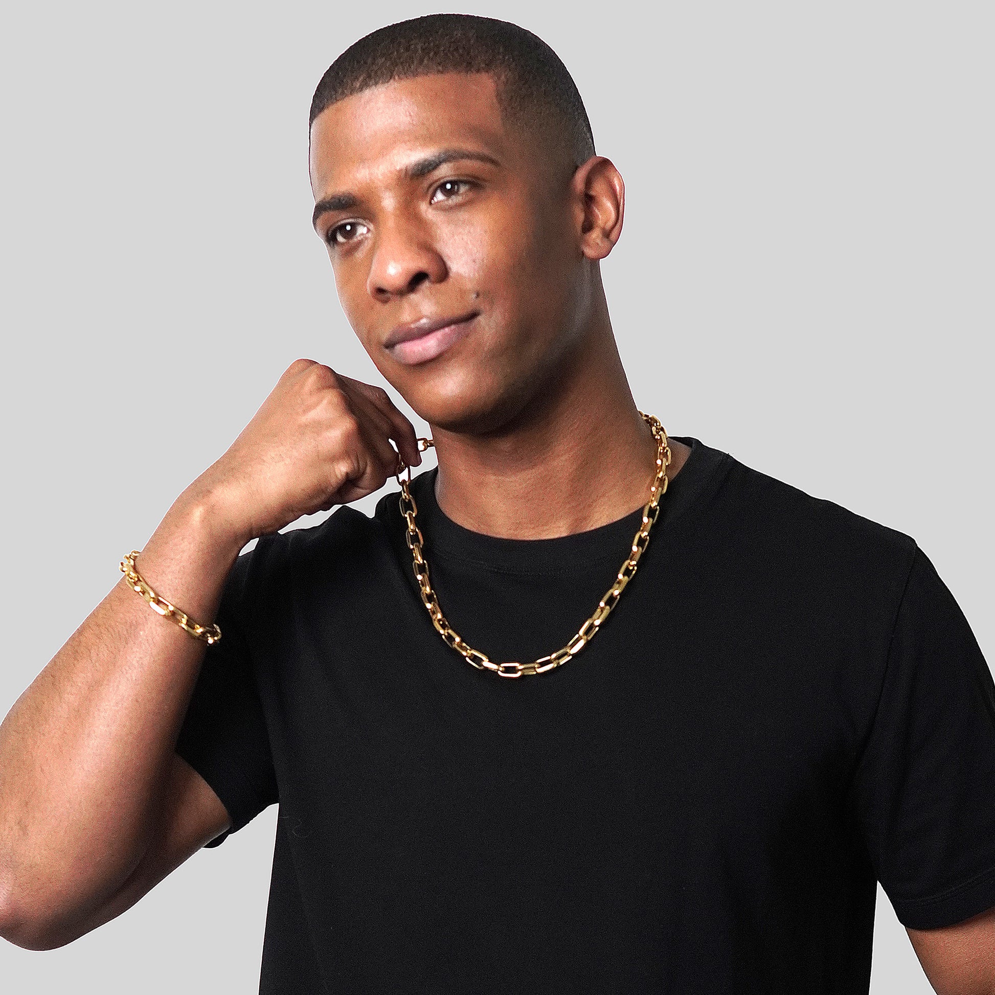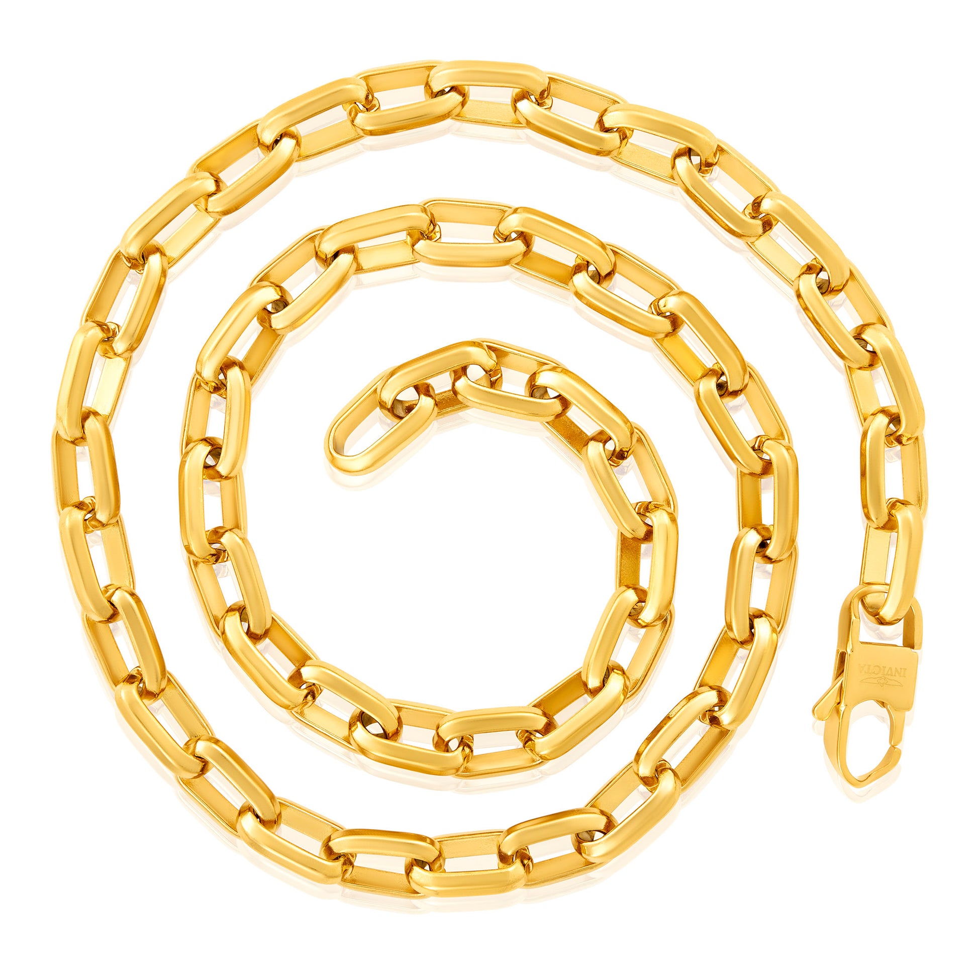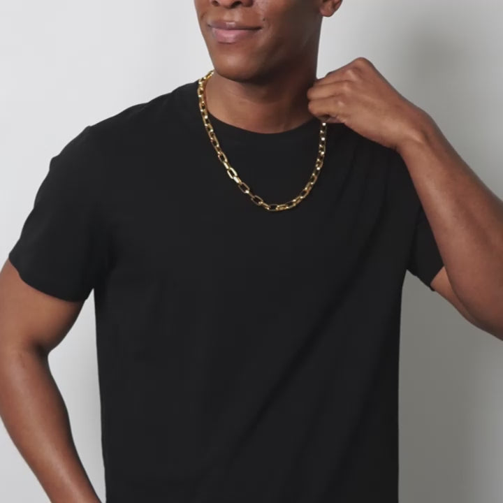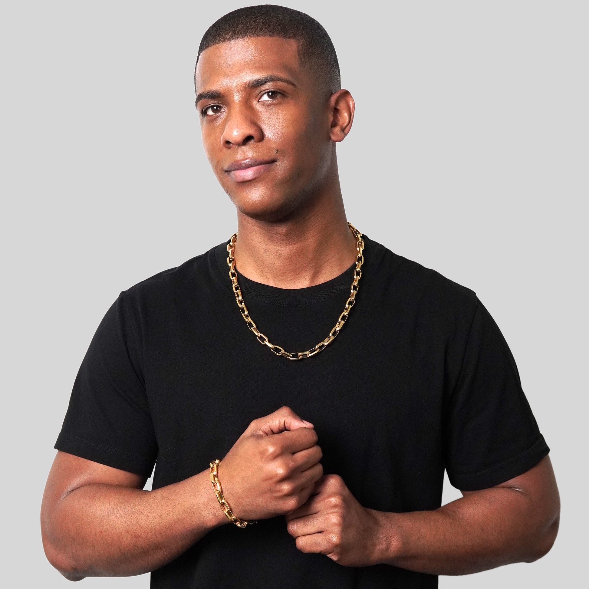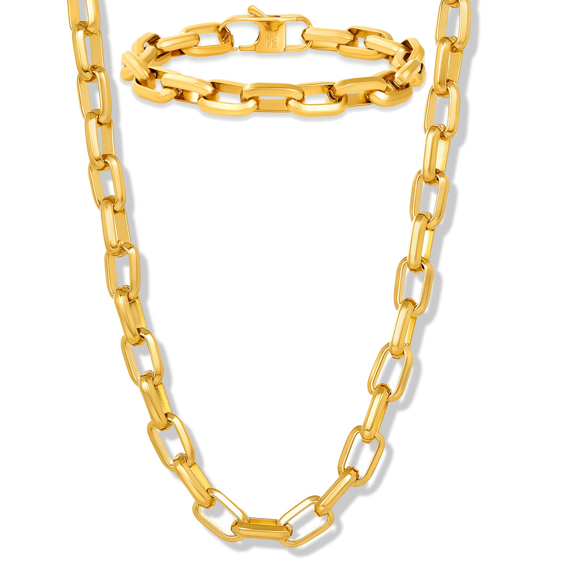 Men's Polished Beveled Edge Large Nautical Oval Links Gold Plated Stainless Steel Bracelet and Necklace Chain Set (10mm)