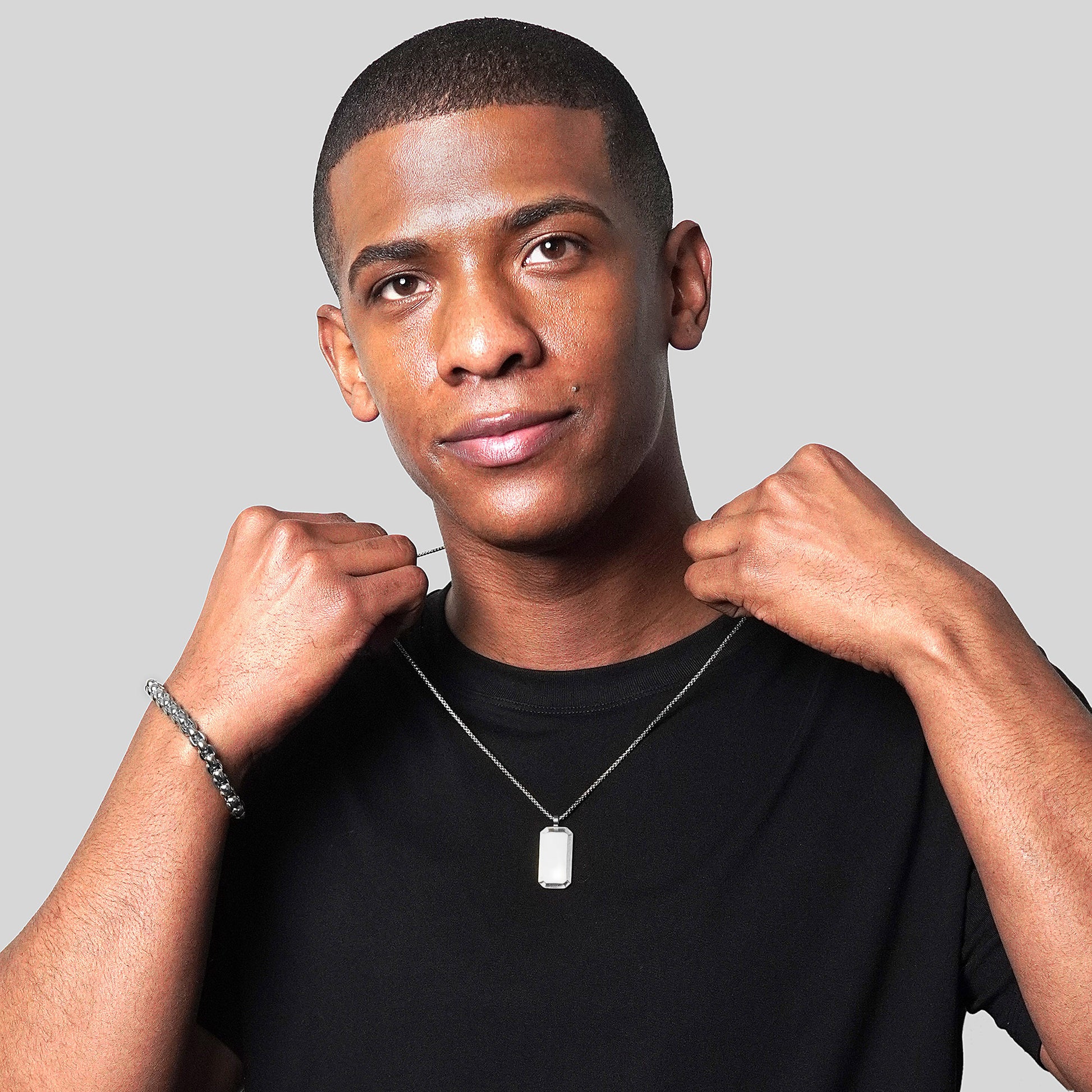 Whether you're dressing up for a night out or keeping it casual, this pendant necklace will effortlessly complement your look. Pair this Dog Tag with your favorite watch or accessories.