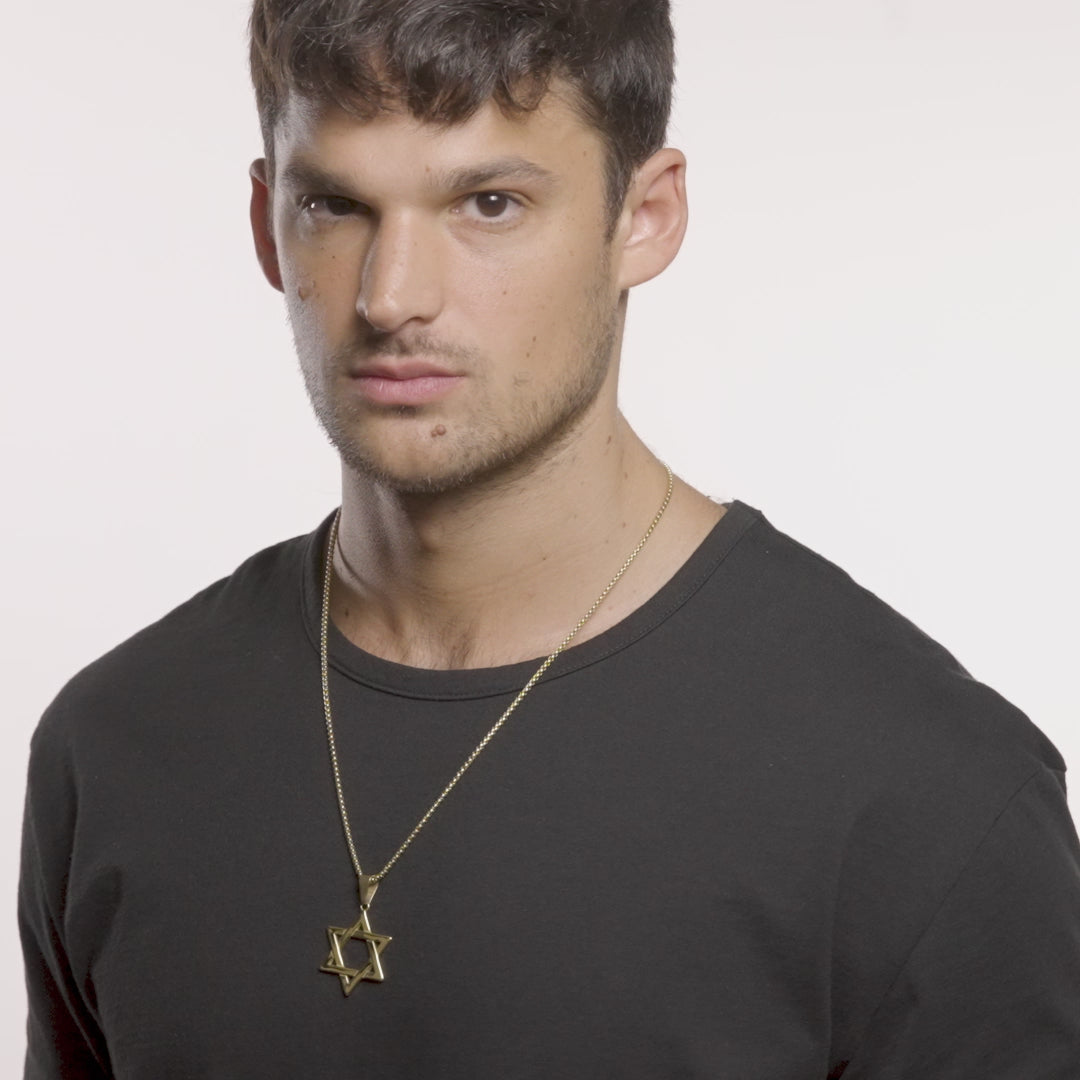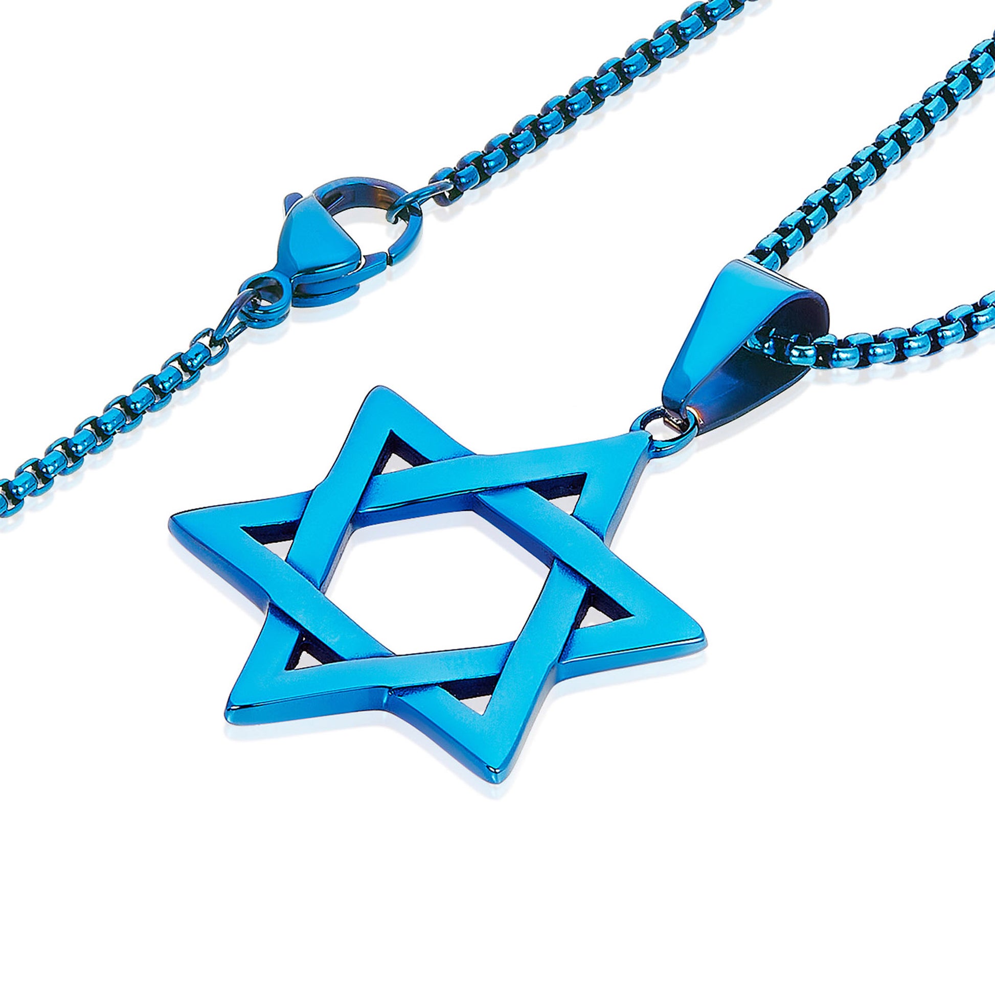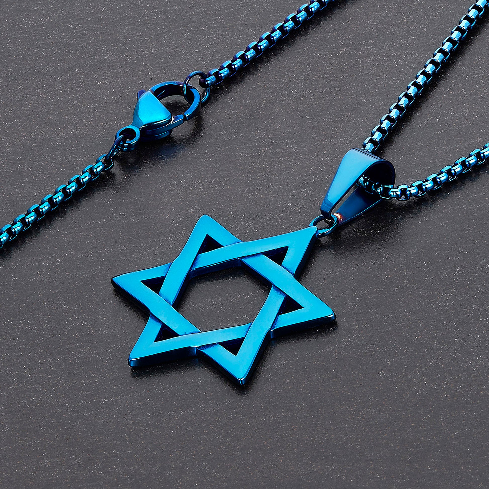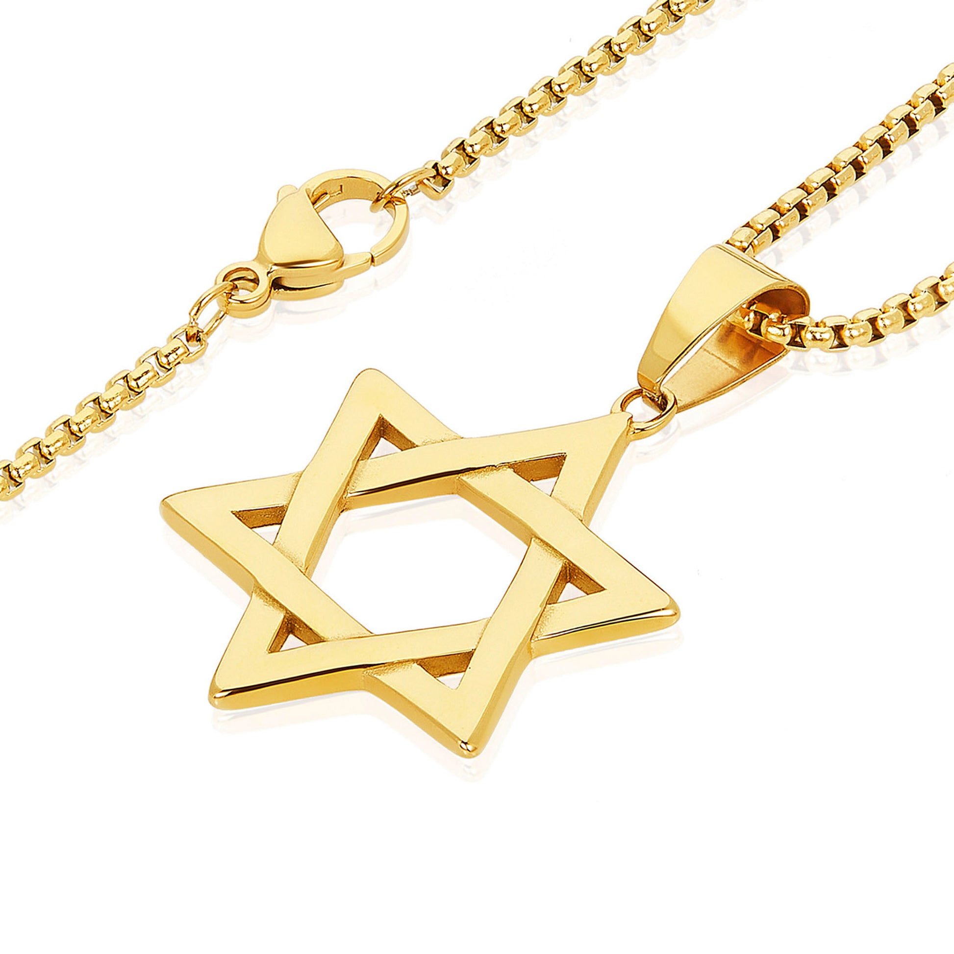 The 'Star of David' pendant is paired with a 24 inch box chain and fastens with a lobster claw clasp.