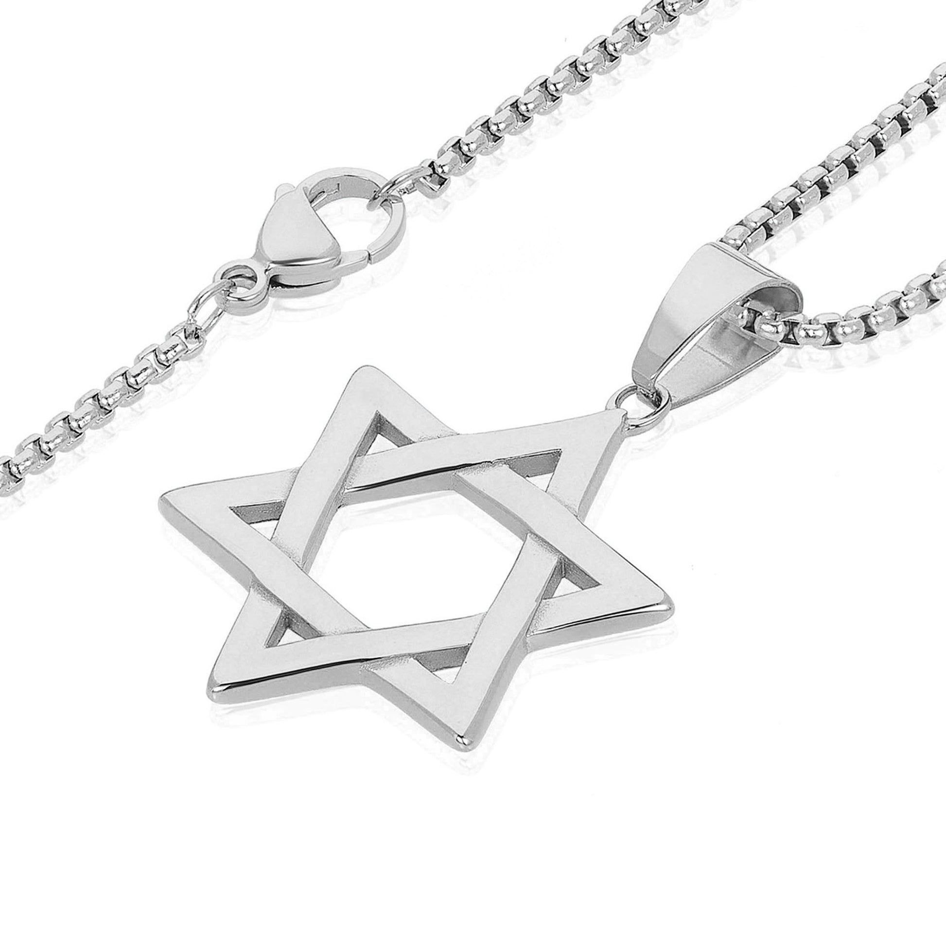 Wear this large Star of David pendant with any style and display your faith. The Magen David hexagram symbol has a glinting high polished finish.