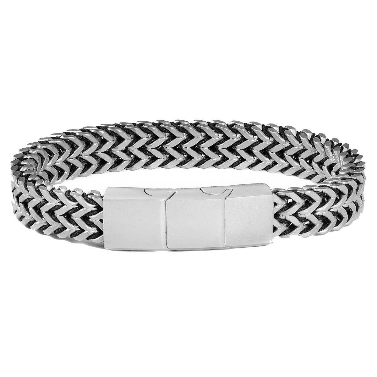 Add this stylish Franco chain bracelet to your choice of daily wear. Crafted with durable stainless steel, it features a matte finish and a unique double row Franco chain design that adds a classic yet modern touch to any look.
