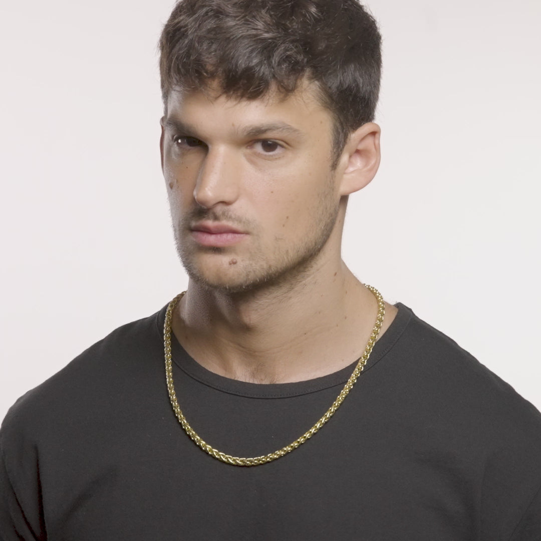 Add a masculine touch to your outfit with this Spiga chain. The design of the Spiga chain, also known as a Wheat chain looks like a unique braided or woven appearance created by interlocking oval links.