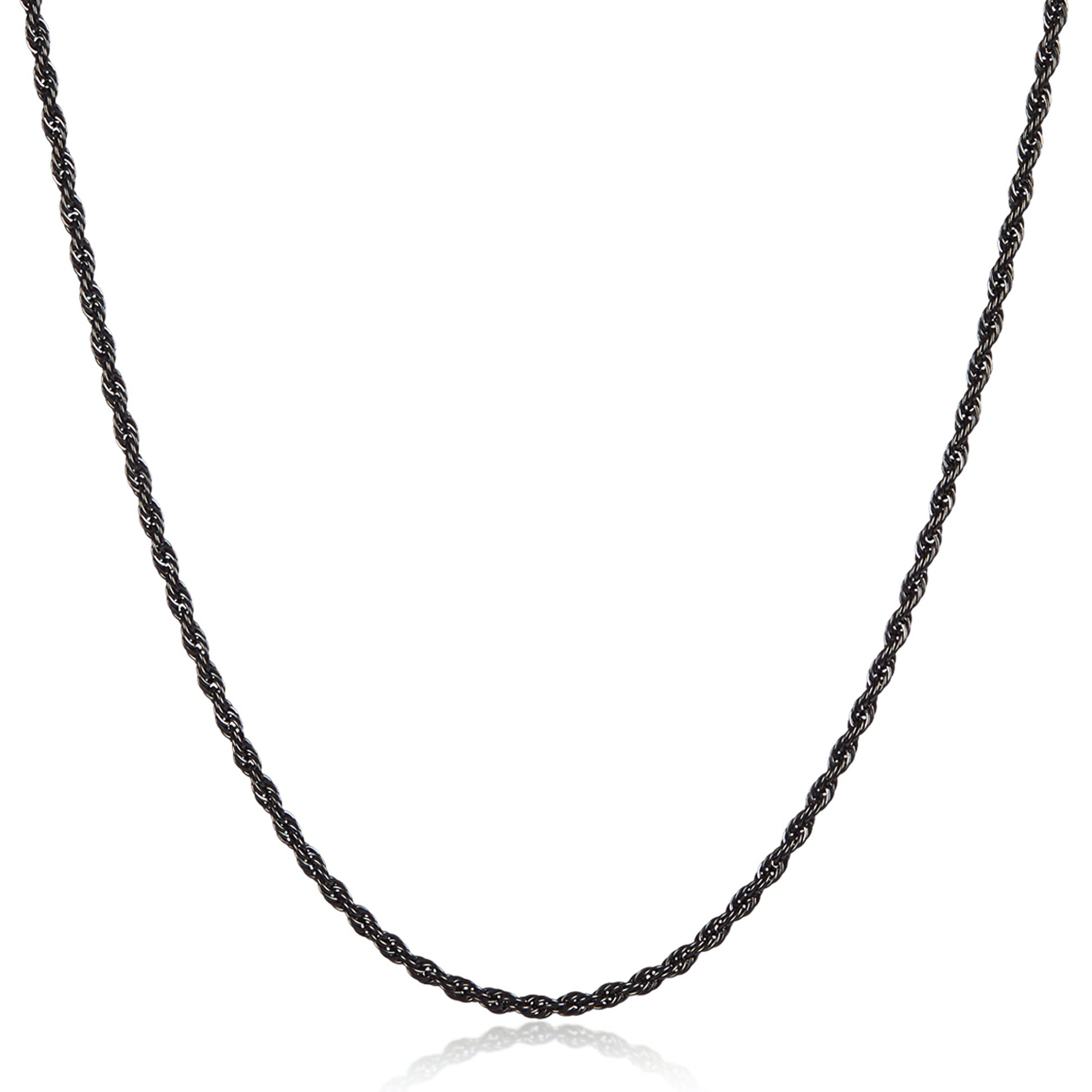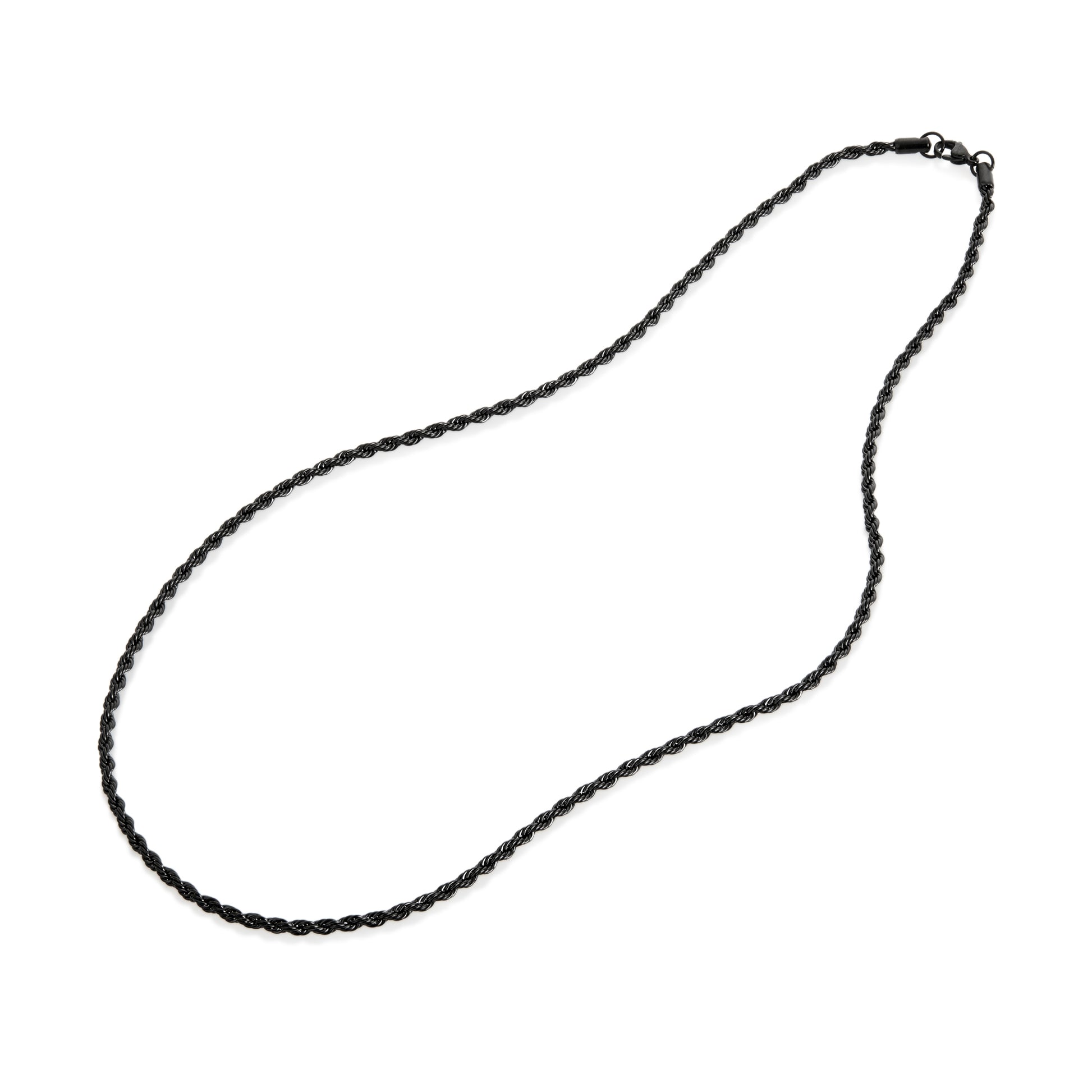 Men's Black Plated Stainless Steel Rope Chain (3mm) - 24"