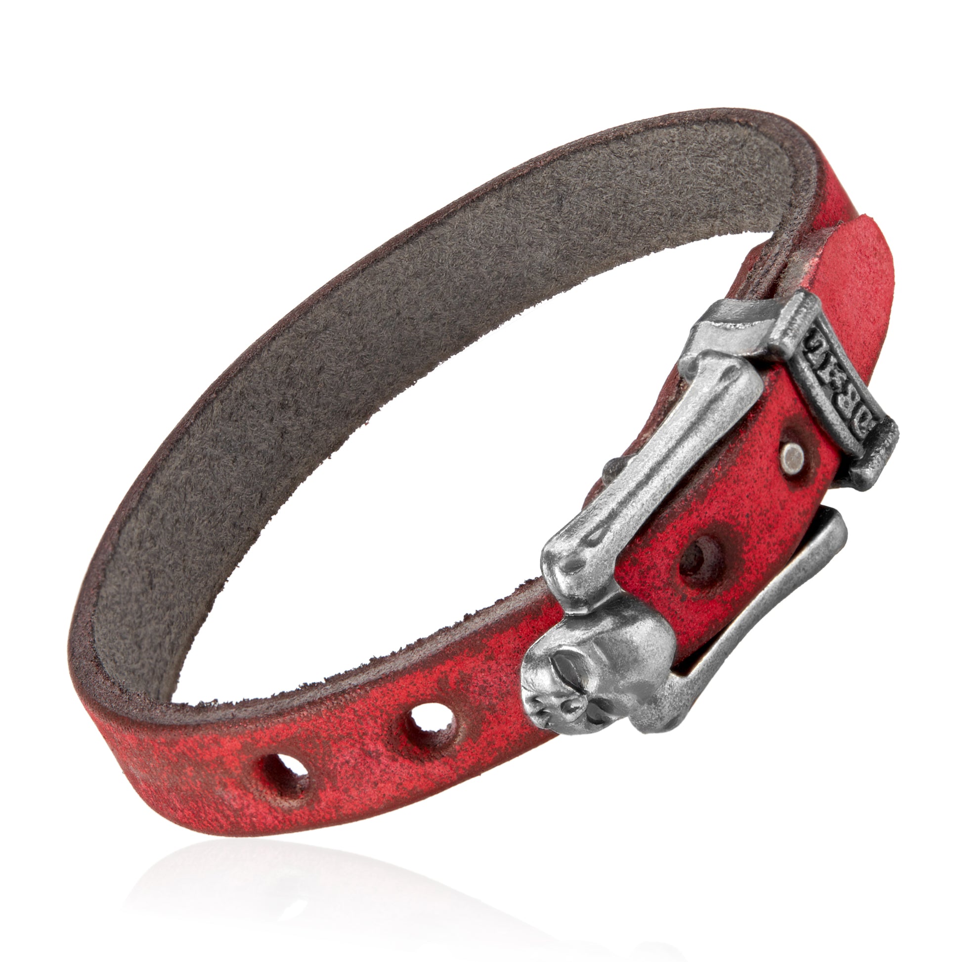 Men's Red Distressed Genuine Leather Skull Buckle Bracelet – Adjustable Vintage Style