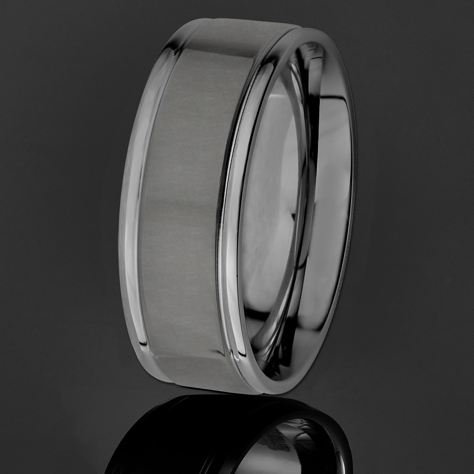 Men's Brushed and Polished Grooved Edges Stainless Steel Ring (8mm Wide)