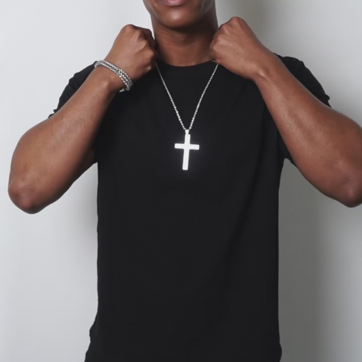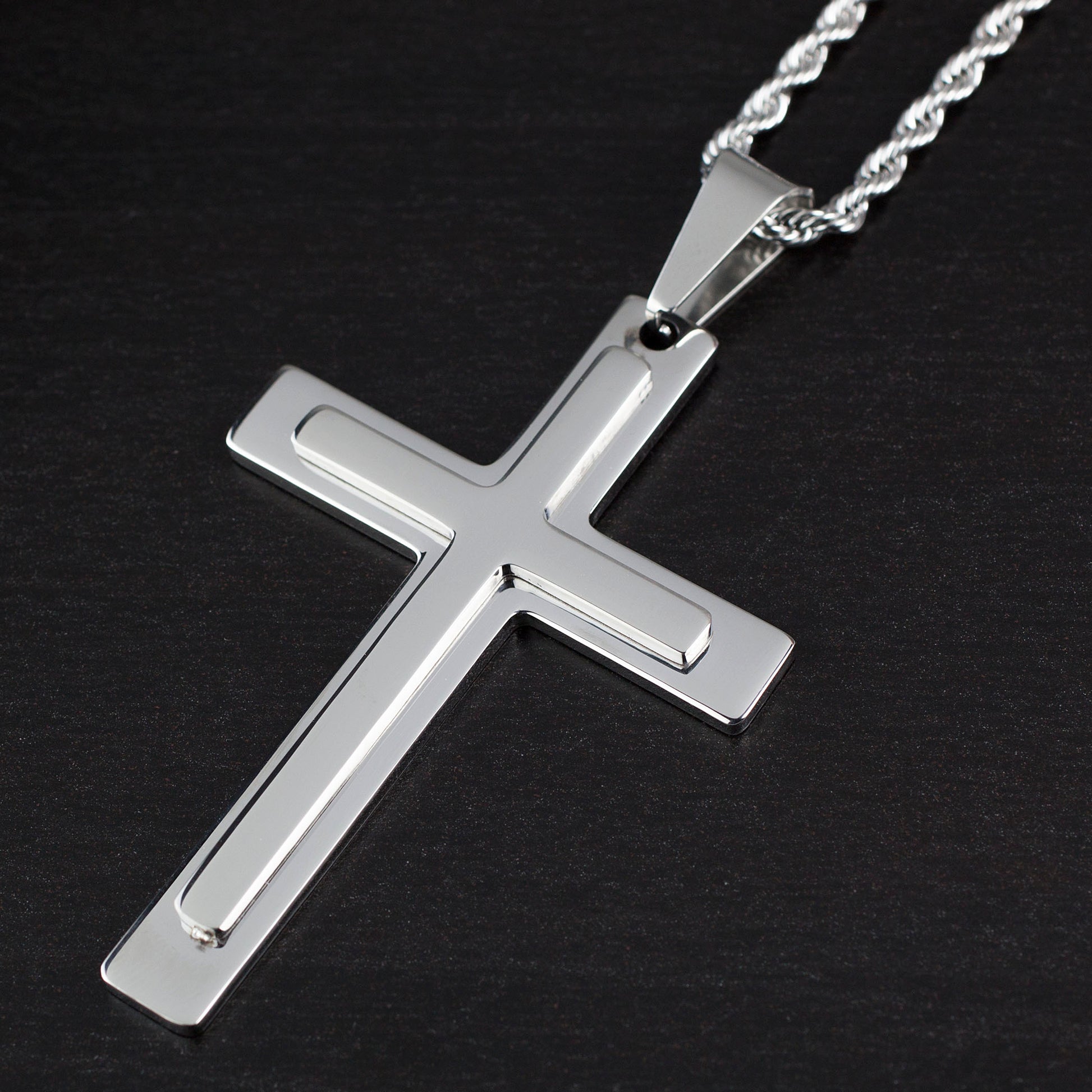 Create a bold statement look when wearing this large cross pendant. The simple necklace design has a polished finish that enhances the layered cross design. The polished Cross is crafted with durable stainless steel.