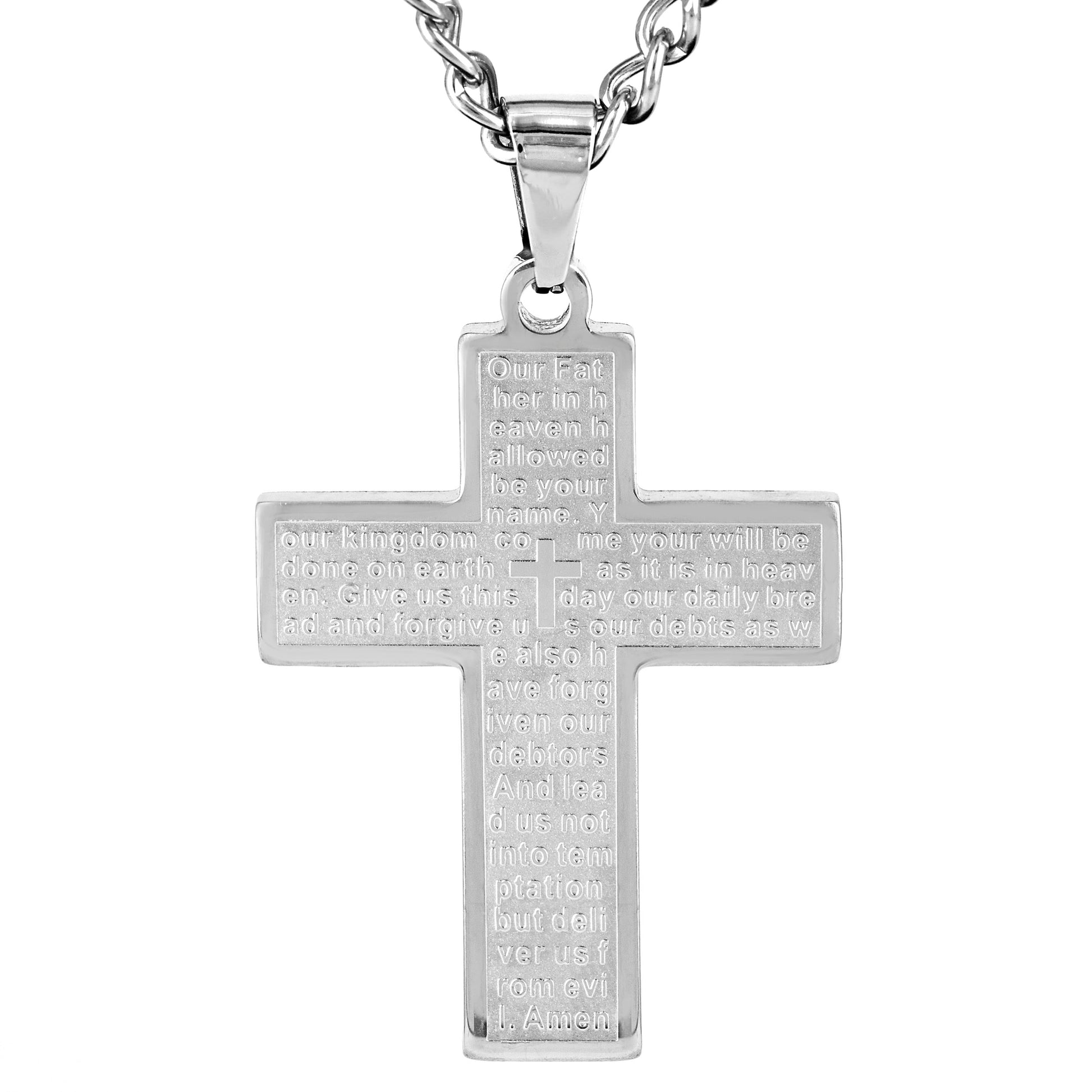 Men's Lord's Prayer Cross Stainless Steel Necklace