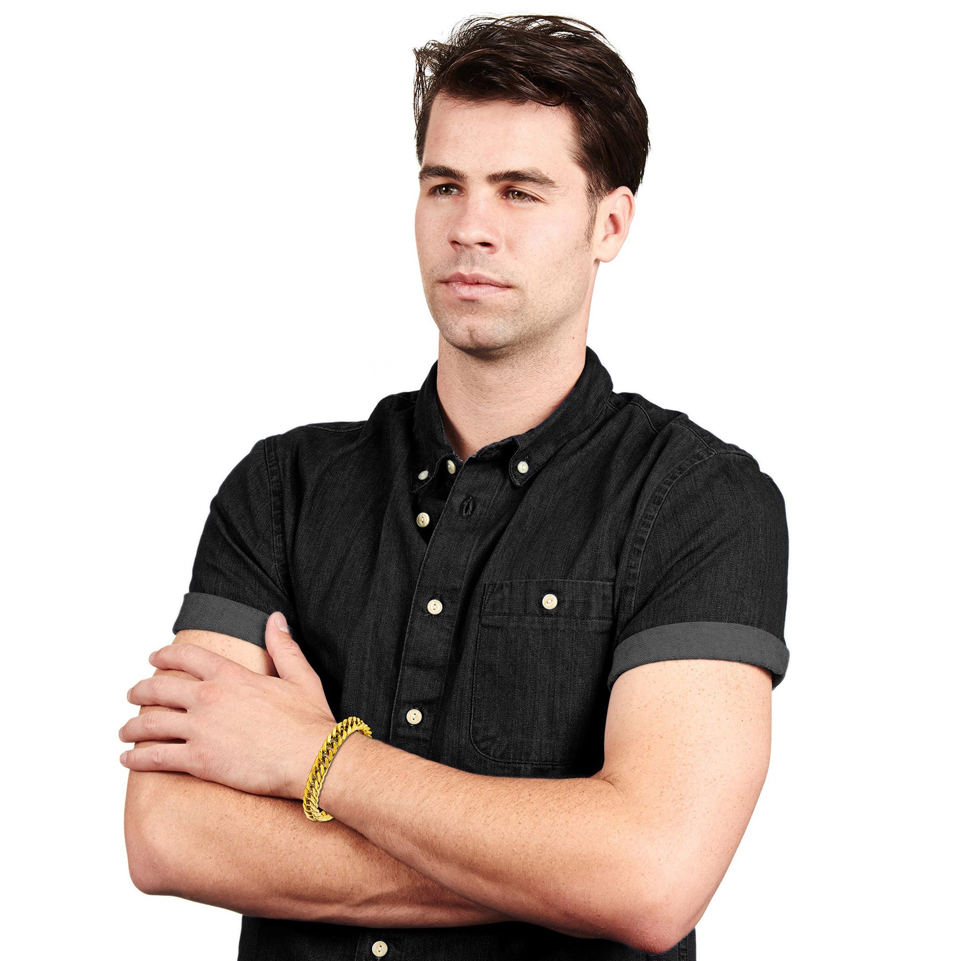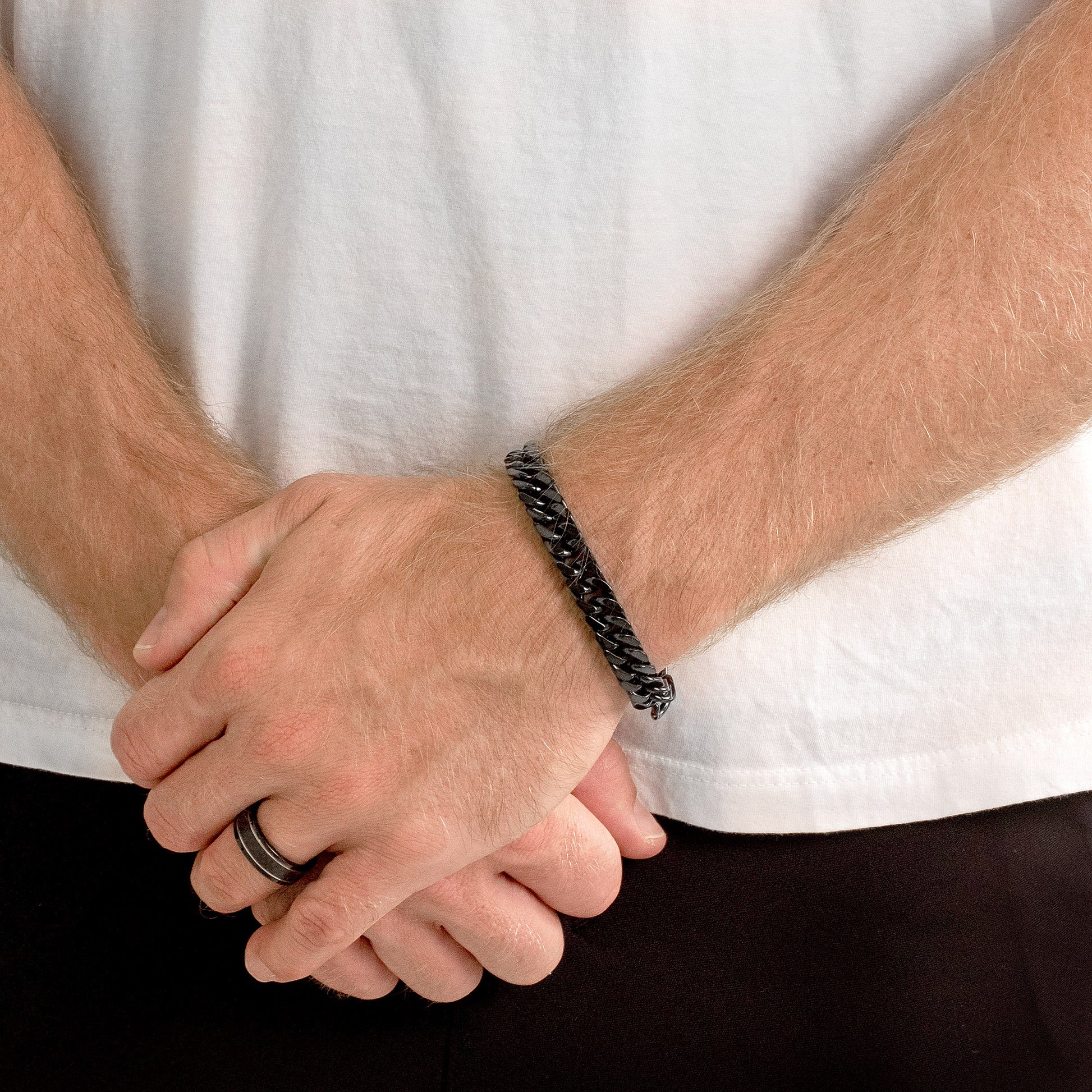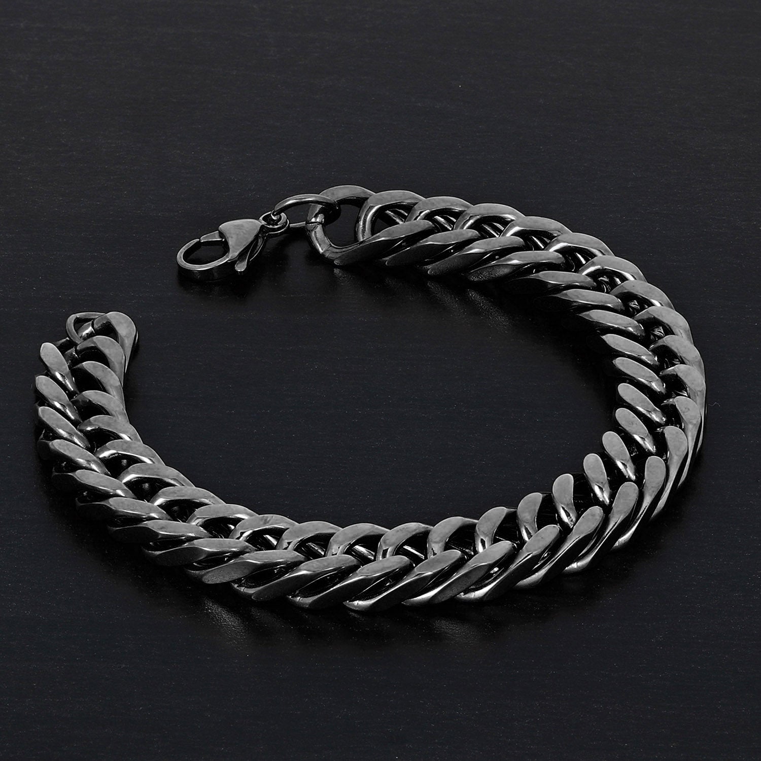 Create your own stylish look when wearing this curb chain bracelet. The bracelet is crafted with durable stainless steel and has a polished finish. The curb chain has a double chain link design in which one link interconnects to the next two links, creating a tight link design.