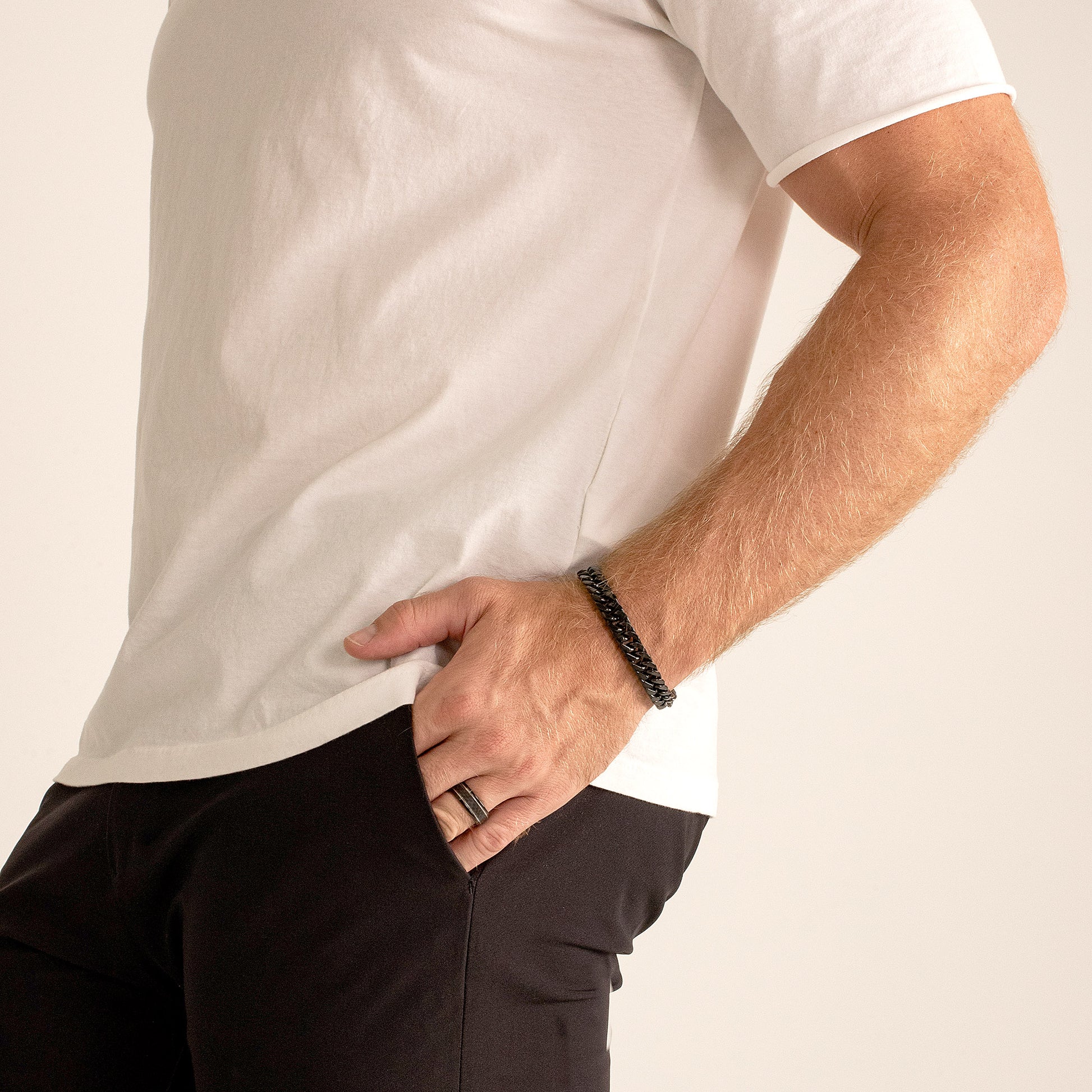 This curb chain has a wearable length of 8 inches and width of 10 millimeters. The bracelet fastens with a lobster claw clasp. Pair this piece with any style whether it's a casual look or a special night out.