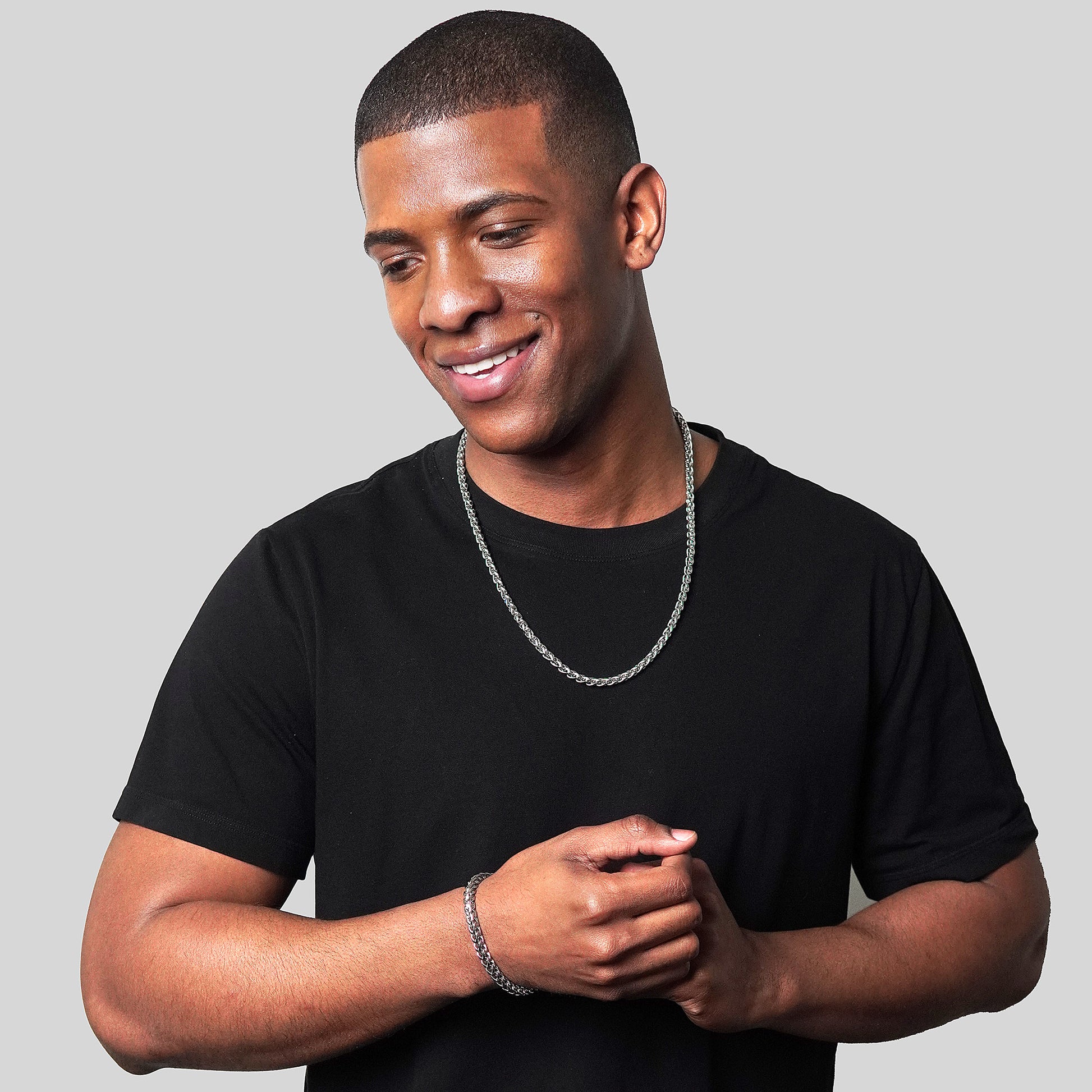 Add a masculine touch to your outfit with this Spiga chain. The design of the Spiga chain, also known as a Wheat chain looks like a unique braided or woven appearance created by interlocking oval links.