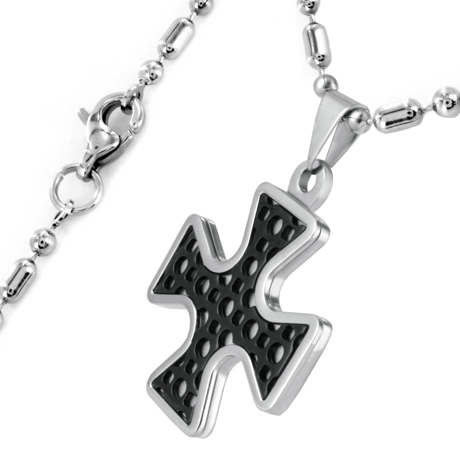 Men's Textured Cross Black Two-Tone Steel Necklace - 24"