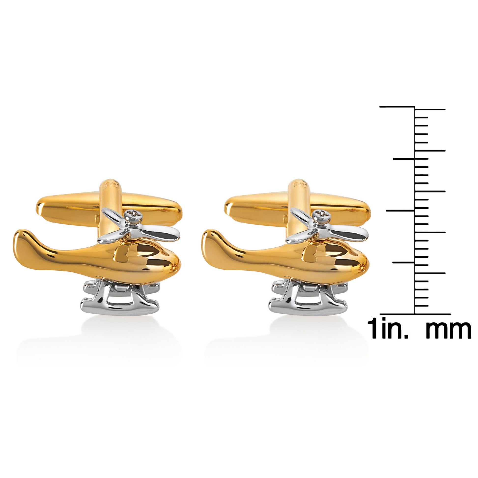 Catch some attention and intrigue the people around with you with these stylish and unique cufflinks. This men's jewelry item features a polished gold plated brass helicopter with silver spinning propeller and a silver landing skid.