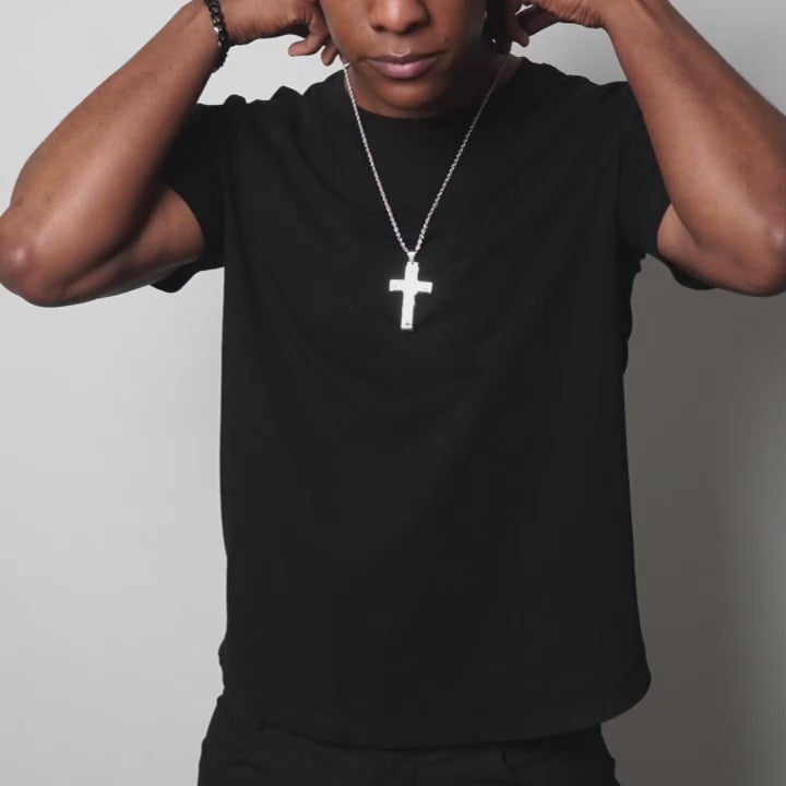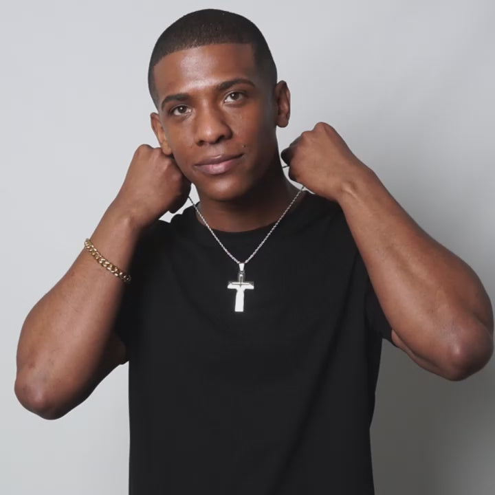 The Cross is crafted with durable stainless steel and will become your favorite add-on accessory to wear for any occasion. The pendant has a polished finish that enhances the top layer cross.