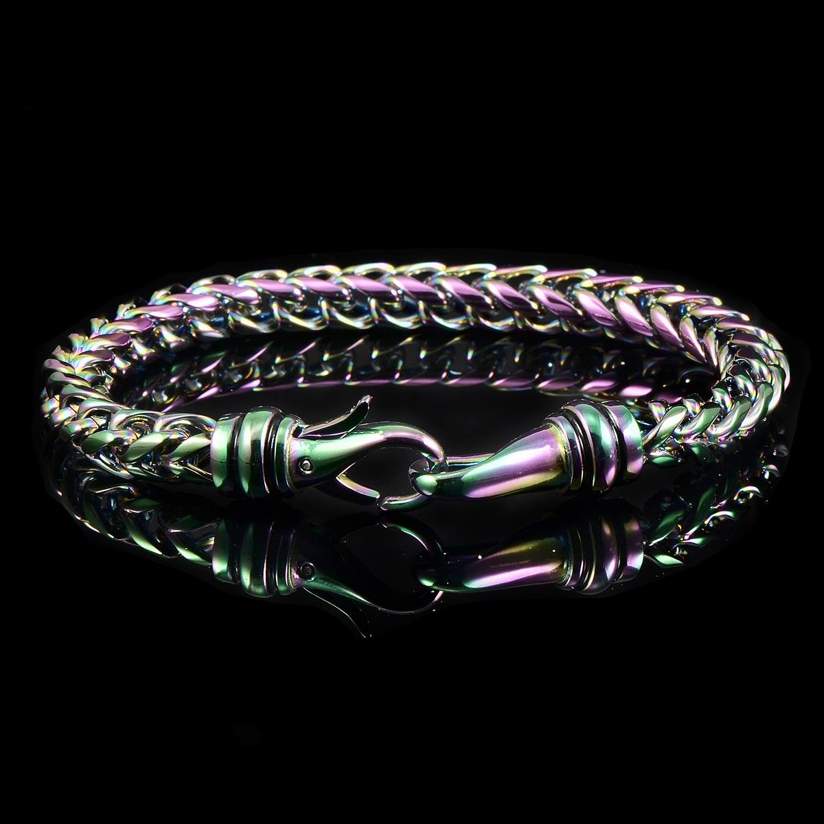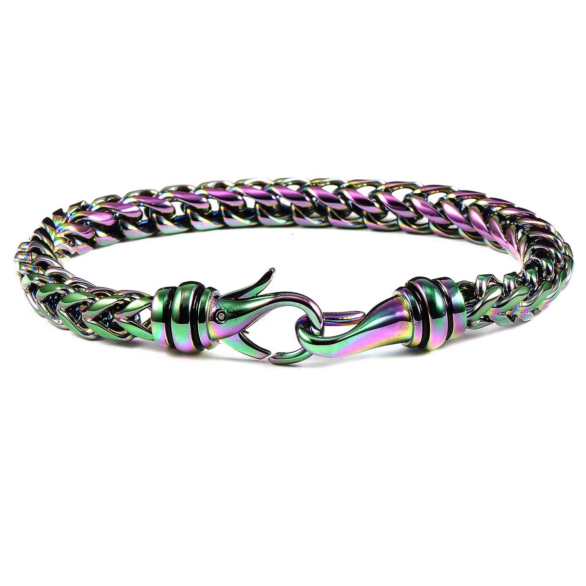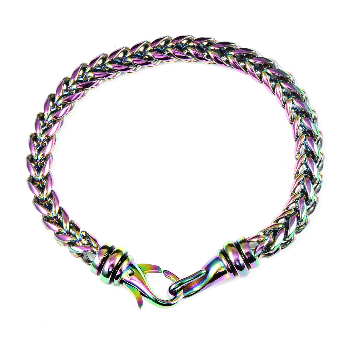 The bracelet has a rounded Franco chain crafted with durable stainless steel and features a nice and polished finish. The small Franco piece can easily be paired with other accessories to create a layered look or wear it alone.
