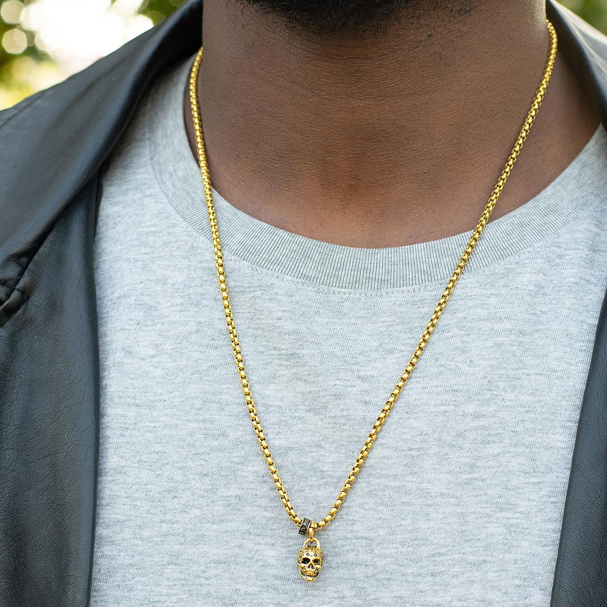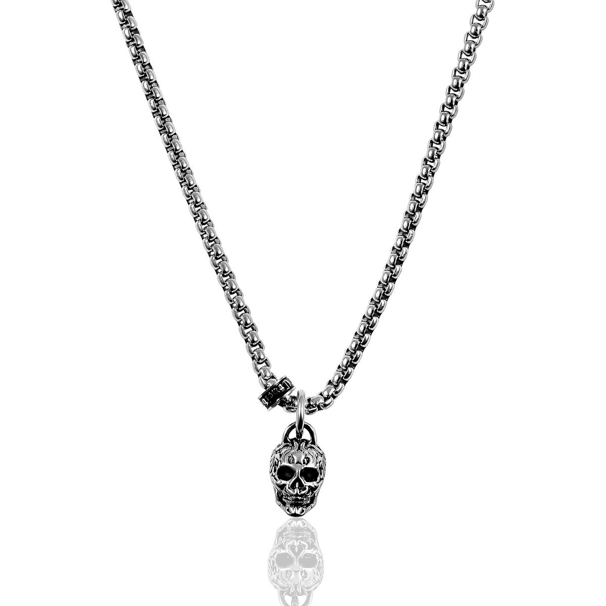 Give your look a little edginess when wearing this skull pendant necklace. The skull necklace is crafted with durable stainless steel making it the perfect piece to wear everyday.