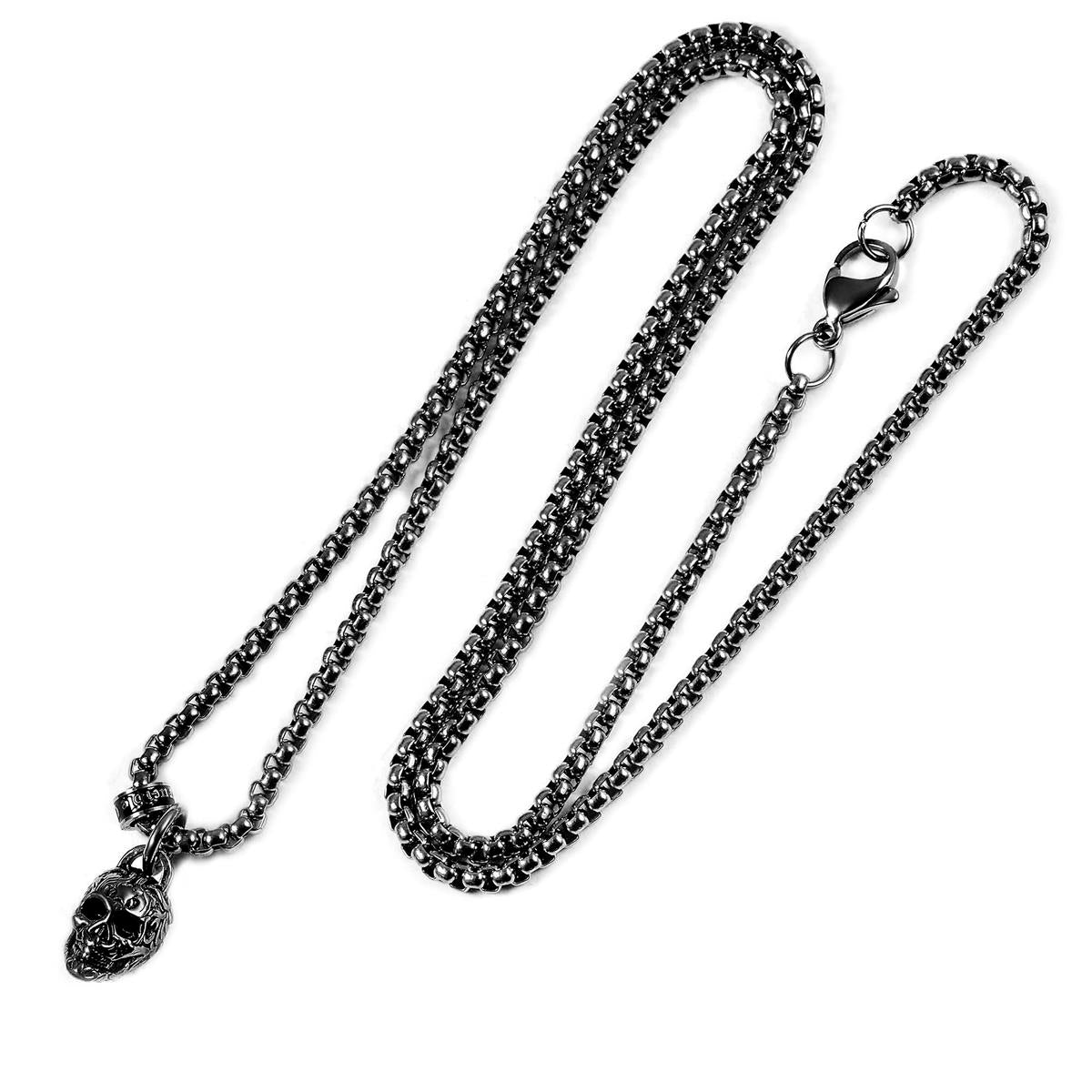 Stainless Steel 12mm Skull Necklace on 24 Inch 3mm Box Chain