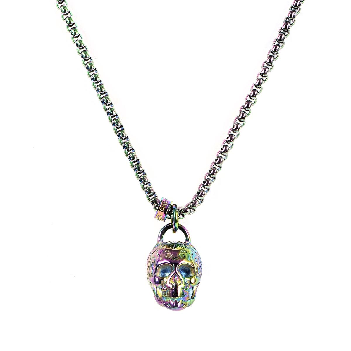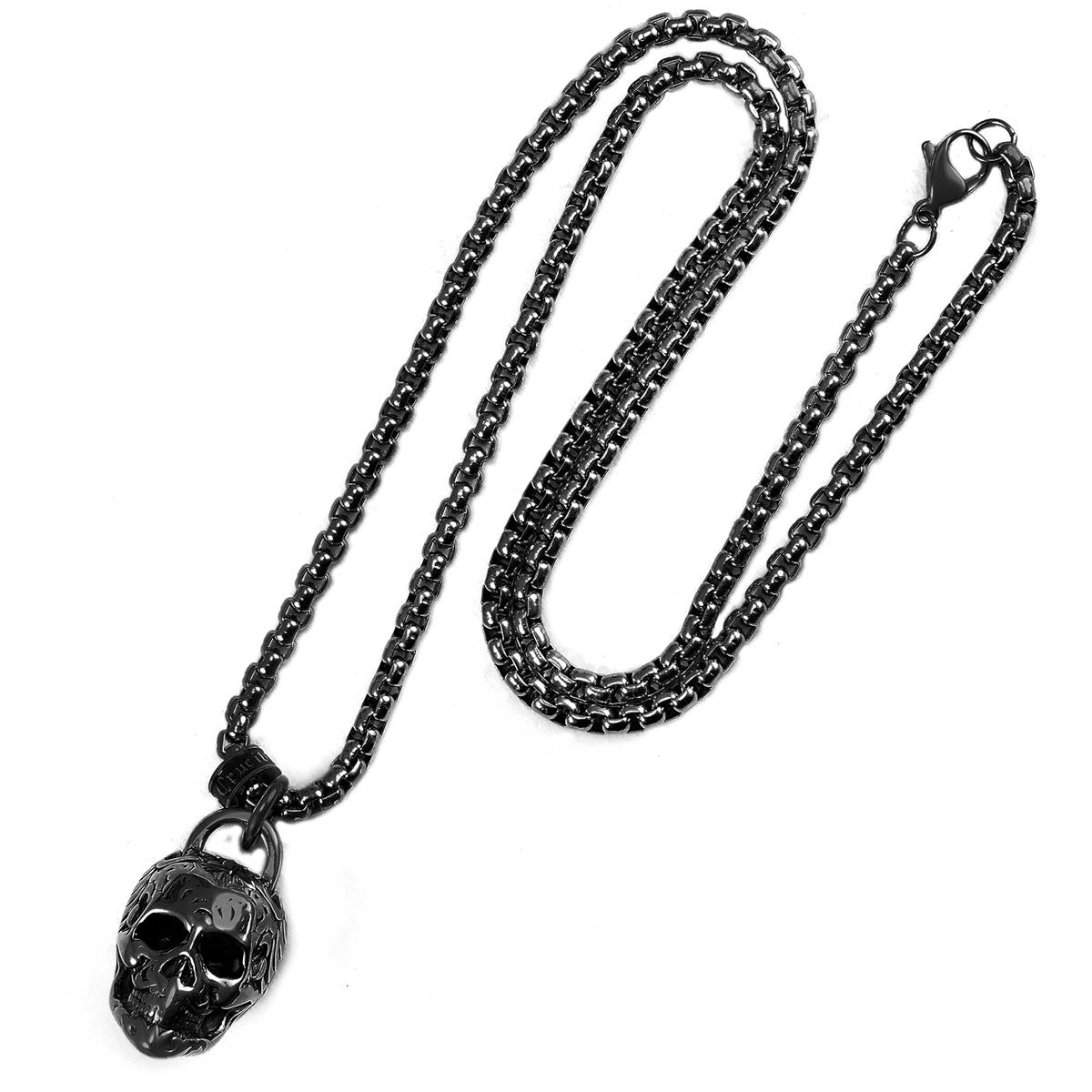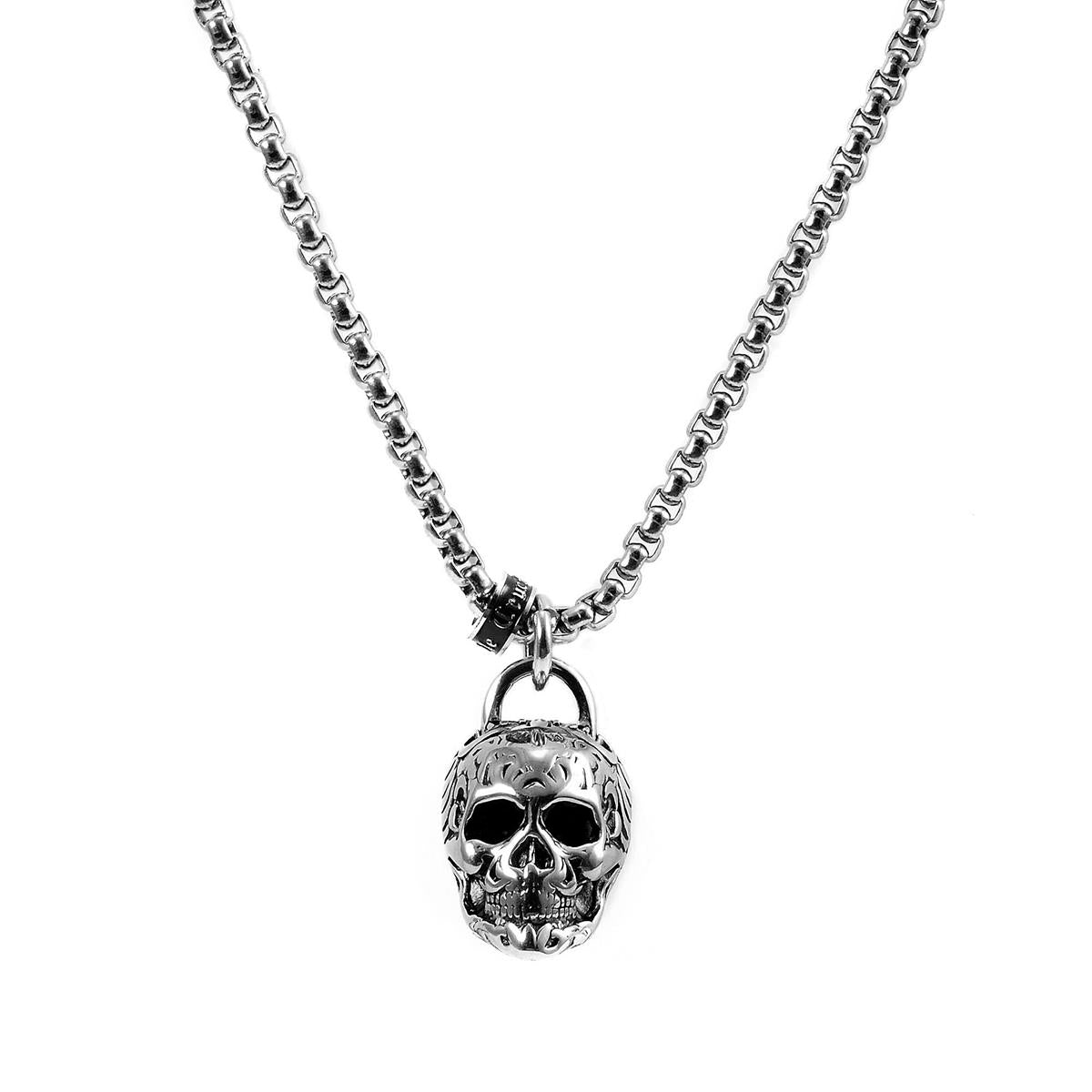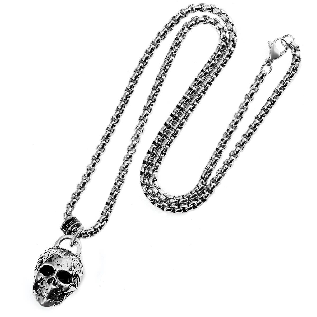 Stainless Steel 25mm Skull Necklace on 24 Inch 4mm Box Chain