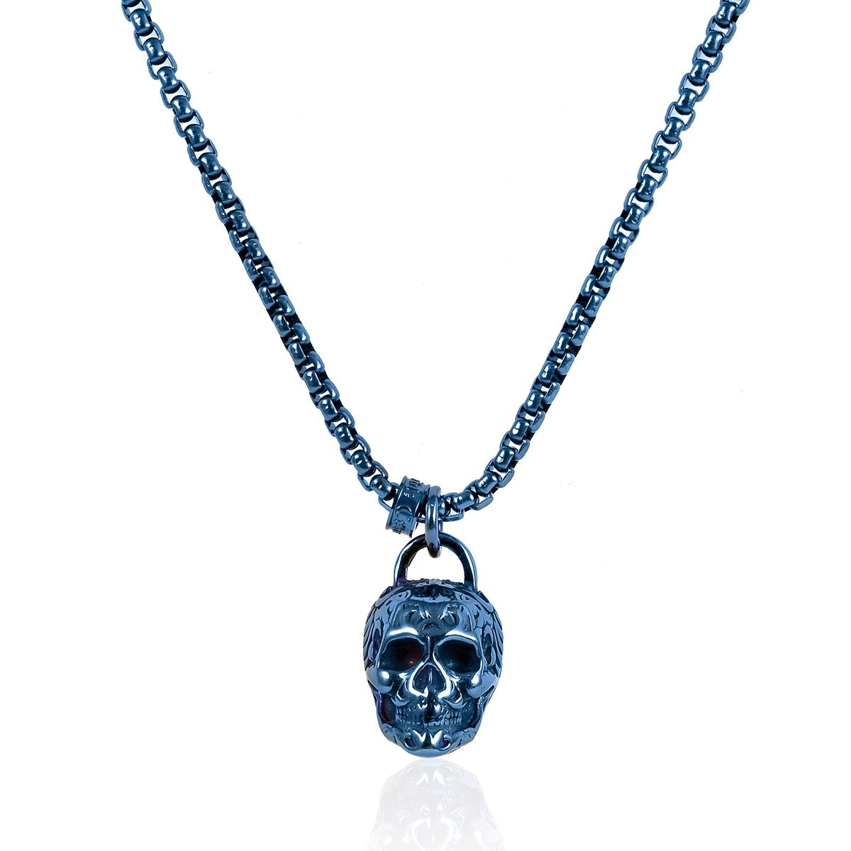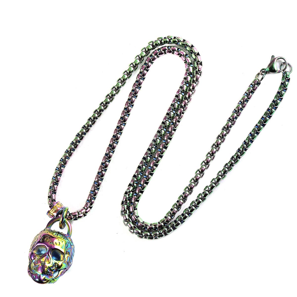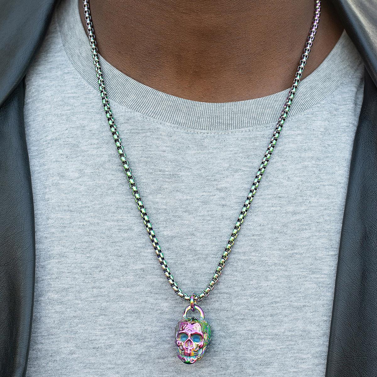 Stainless Steel 25mm Skull Necklace on 24 Inch 4mm Box Chain