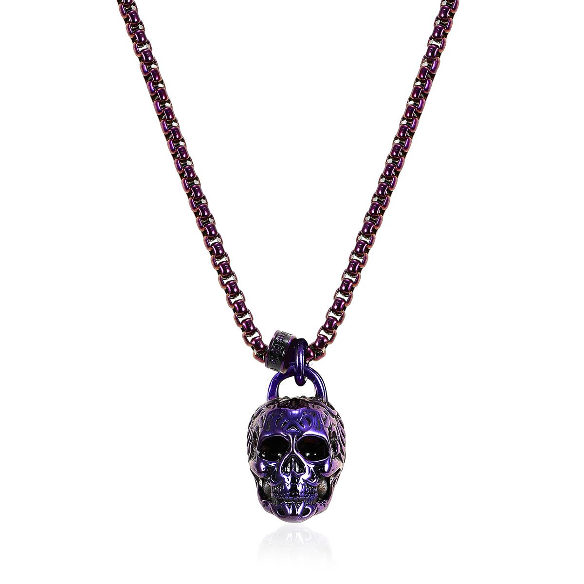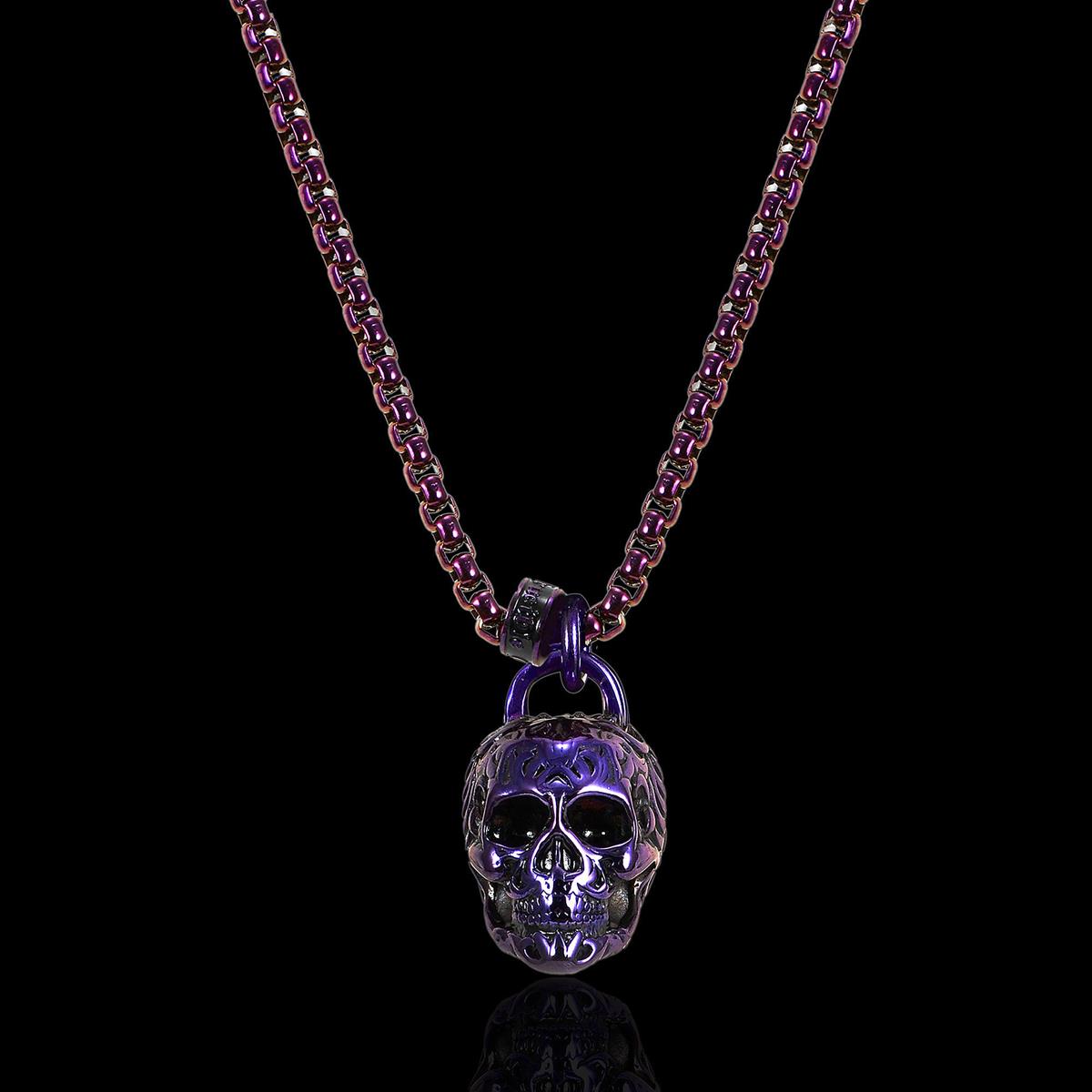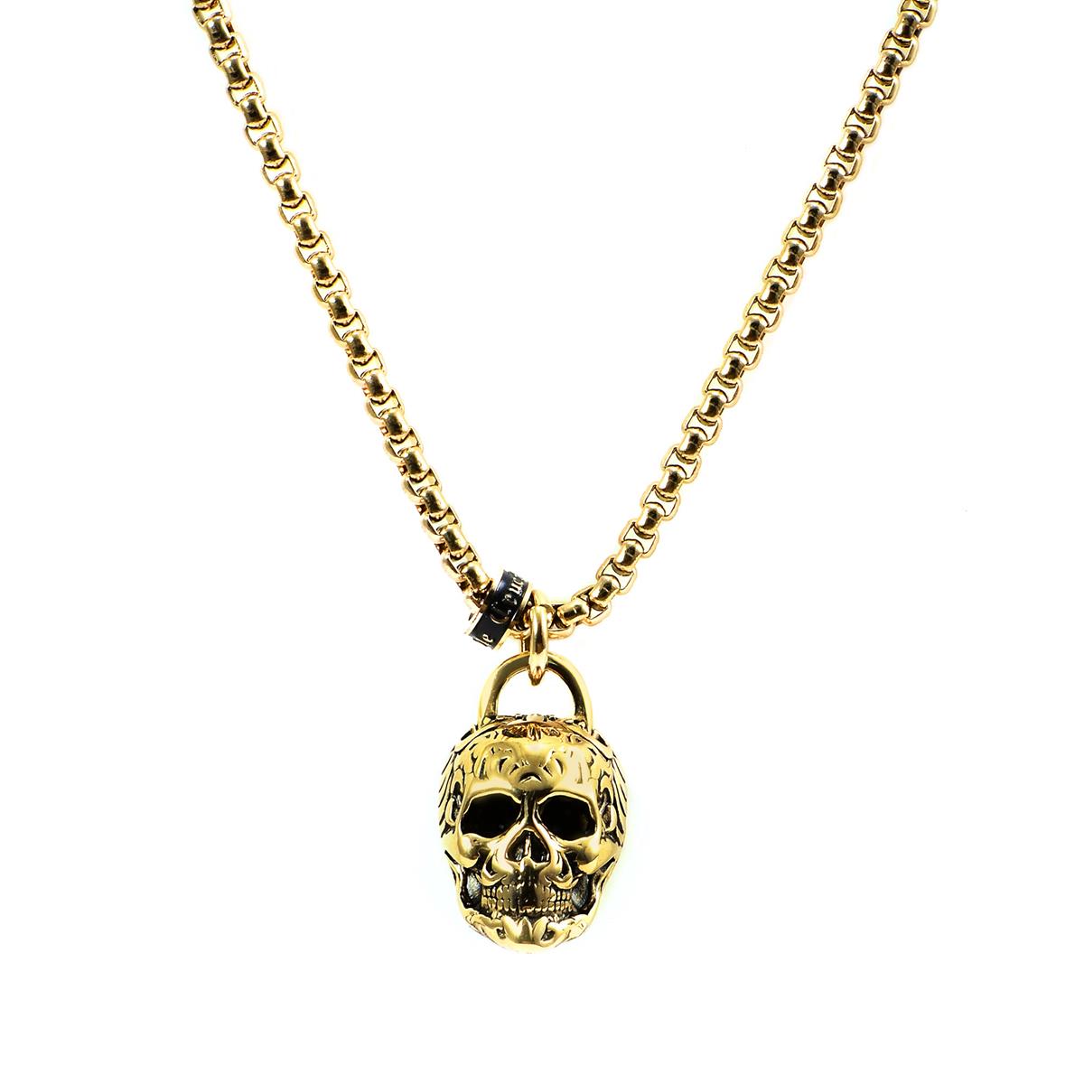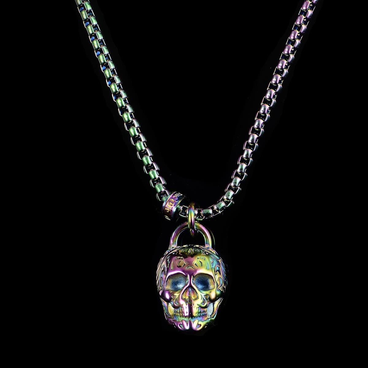 Stainless Steel 25mm Skull Necklace on 24 Inch 4mm Box Chain