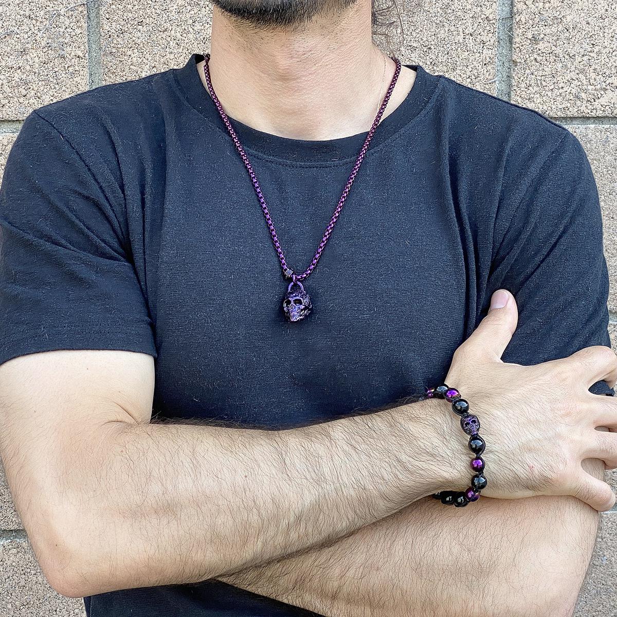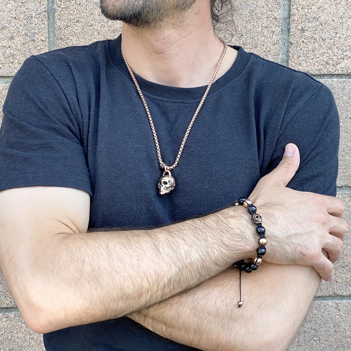 Add this bold skull pendant to your choice of daily wear. The detailed skull is crafted with durable stainless steel and combines a polished and antiqued finish.