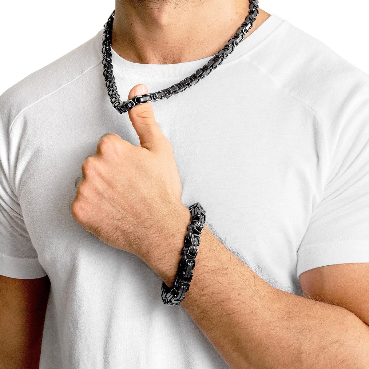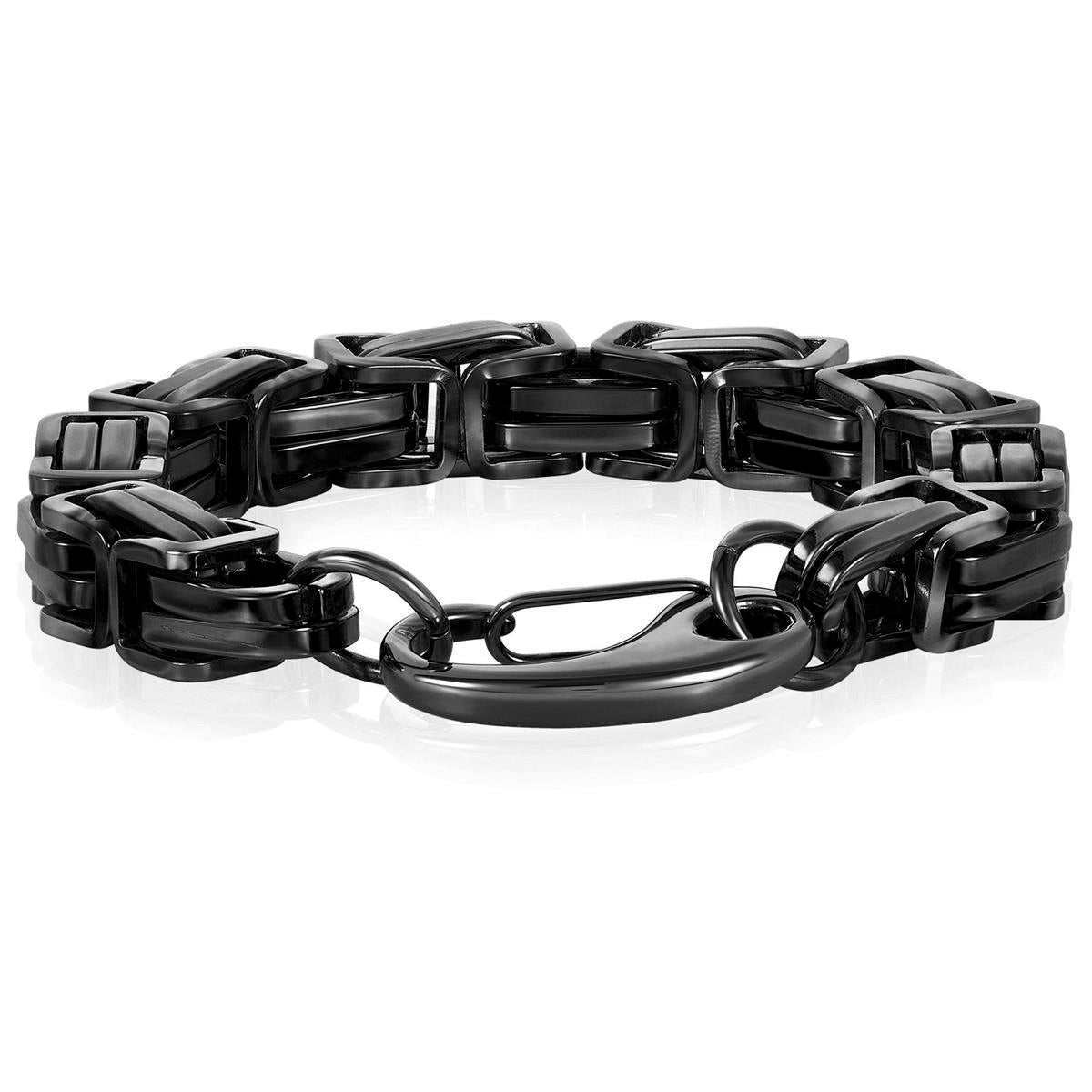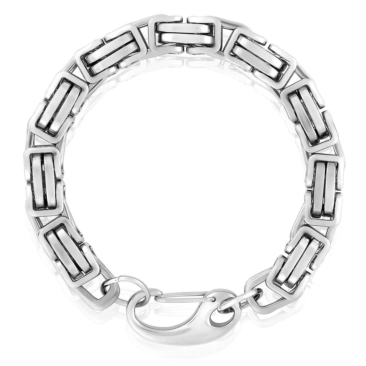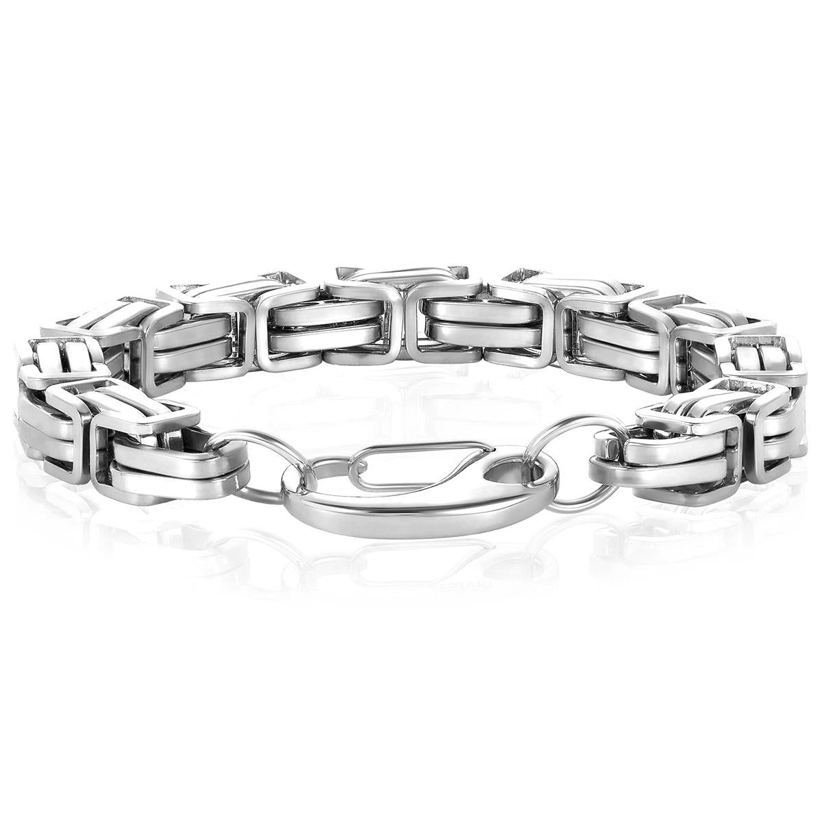 Add this stylish stainless steel Byzantine chain bracelet to your choice of daily wear. The byzantine chain offers a classic chain style yet modernized design with its wide width and an oversized clip lobster closure.
