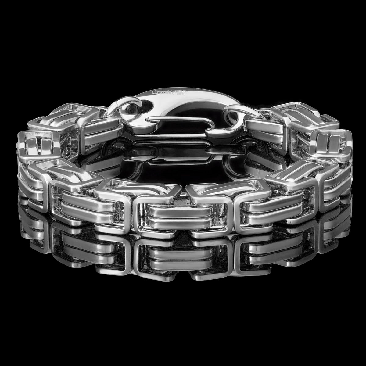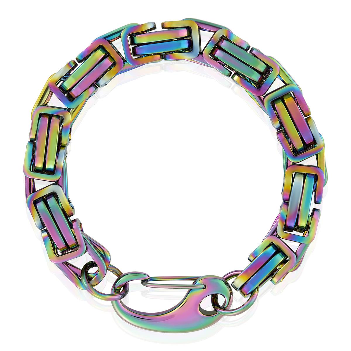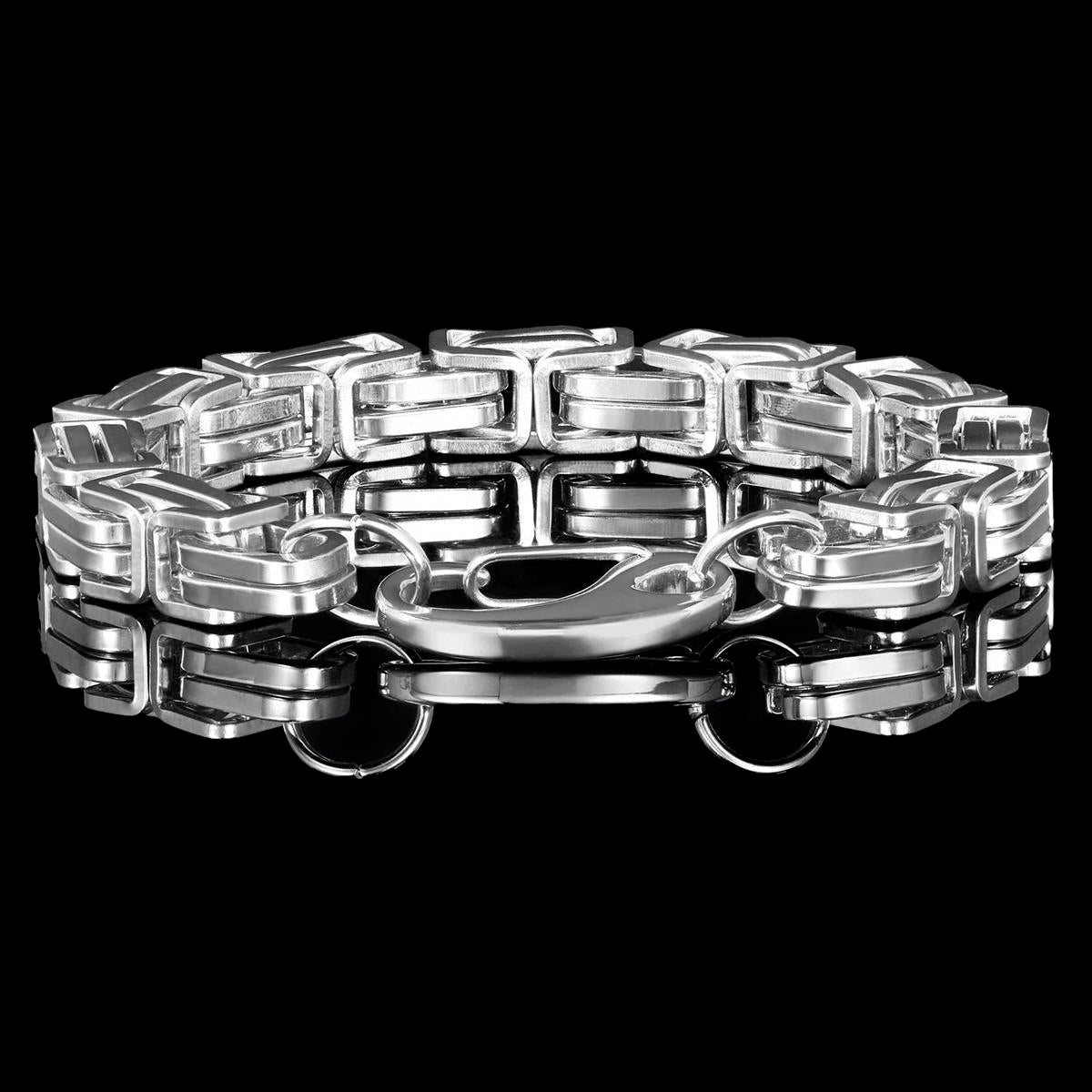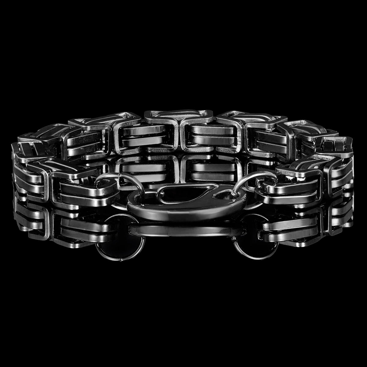 Add this stylish stainless steel Byzantine chain bracelet to your choice of daily wear. The byzantine chain offers a classic chain style yet modernized design with its wide width and an oversized clip lobster closure.
