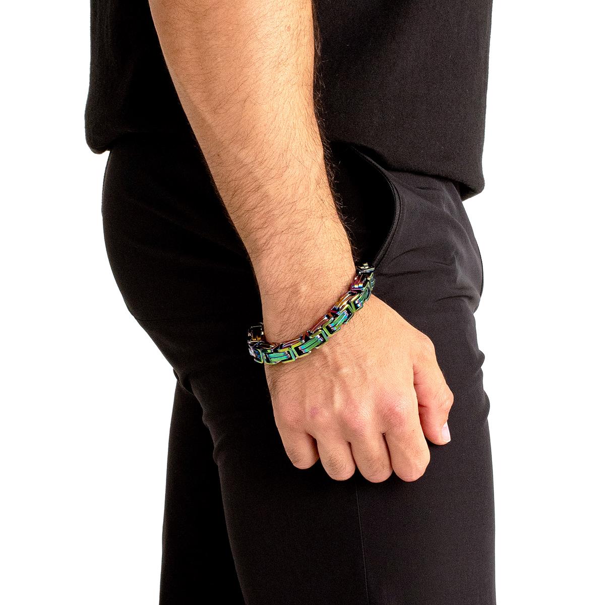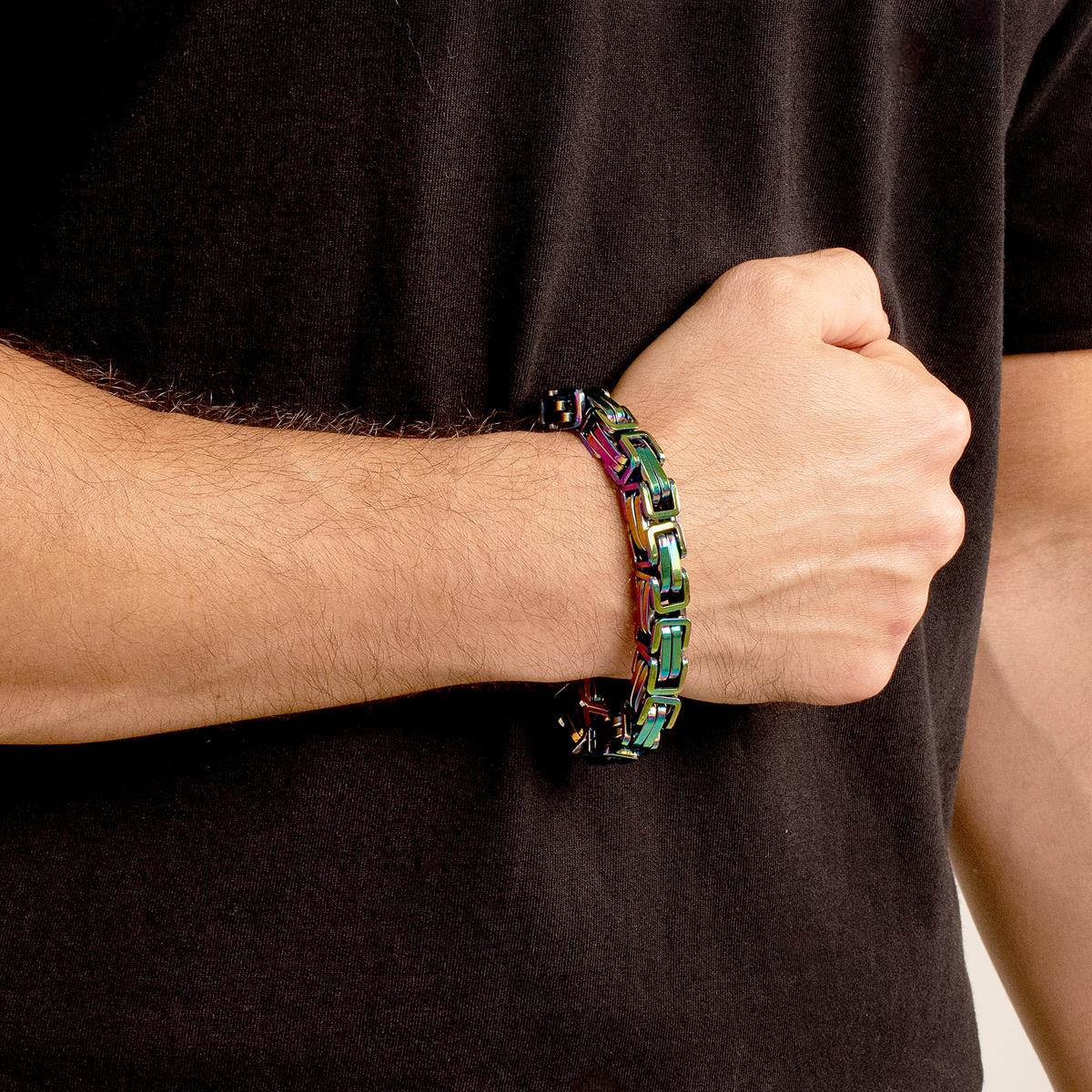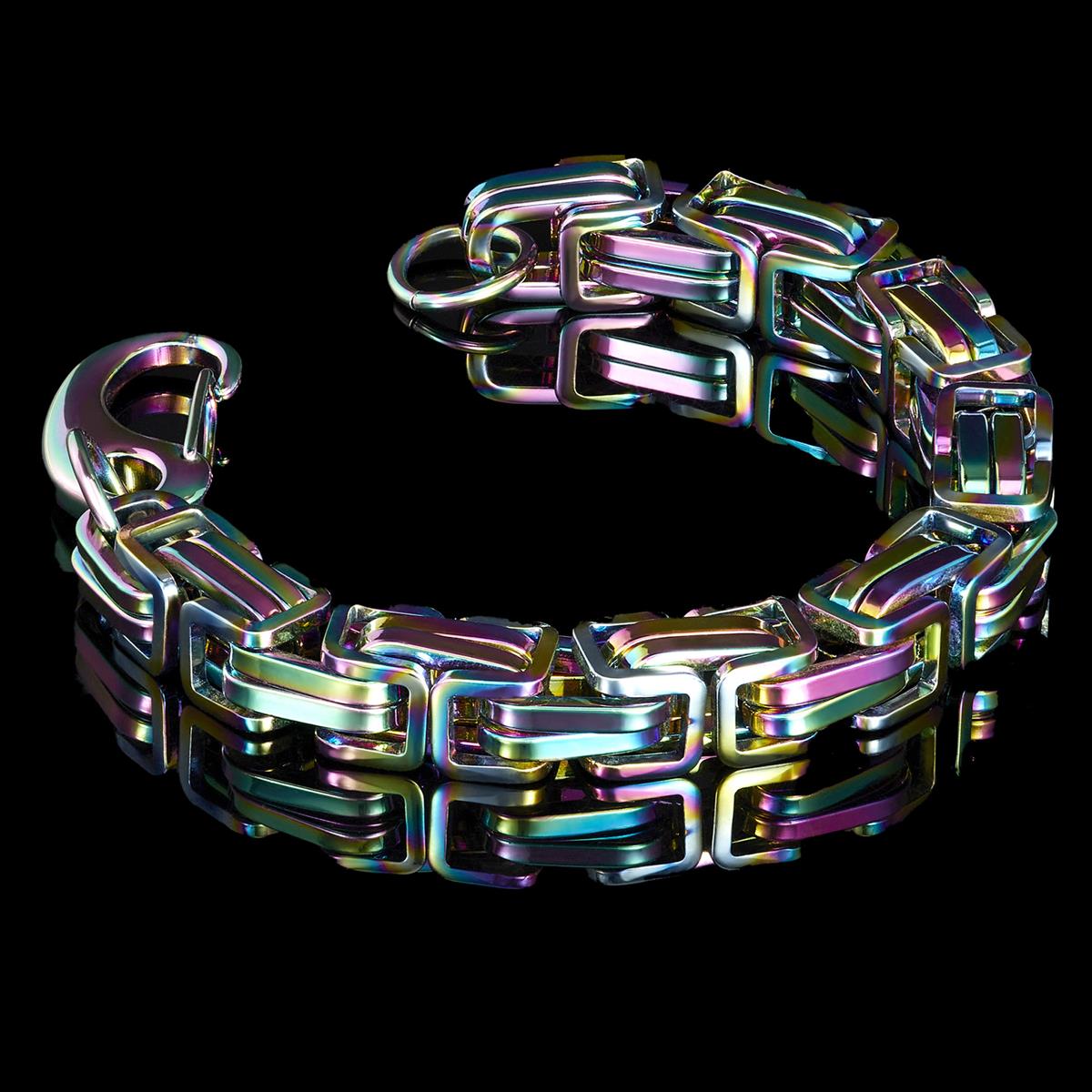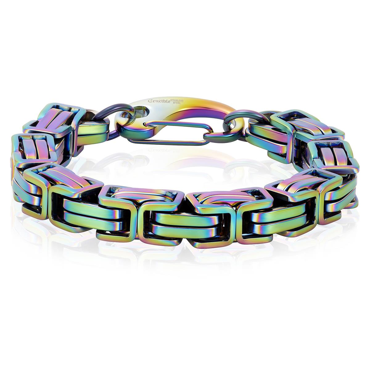 Add this stylish stainless steel Byzantine chain bracelet to your choice of daily wear. The byzantine chain offers a classic chain style yet modernized design with its wide width and an oversized clip lobster closure.