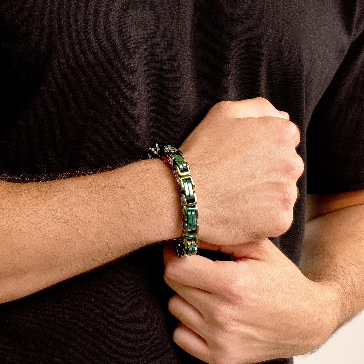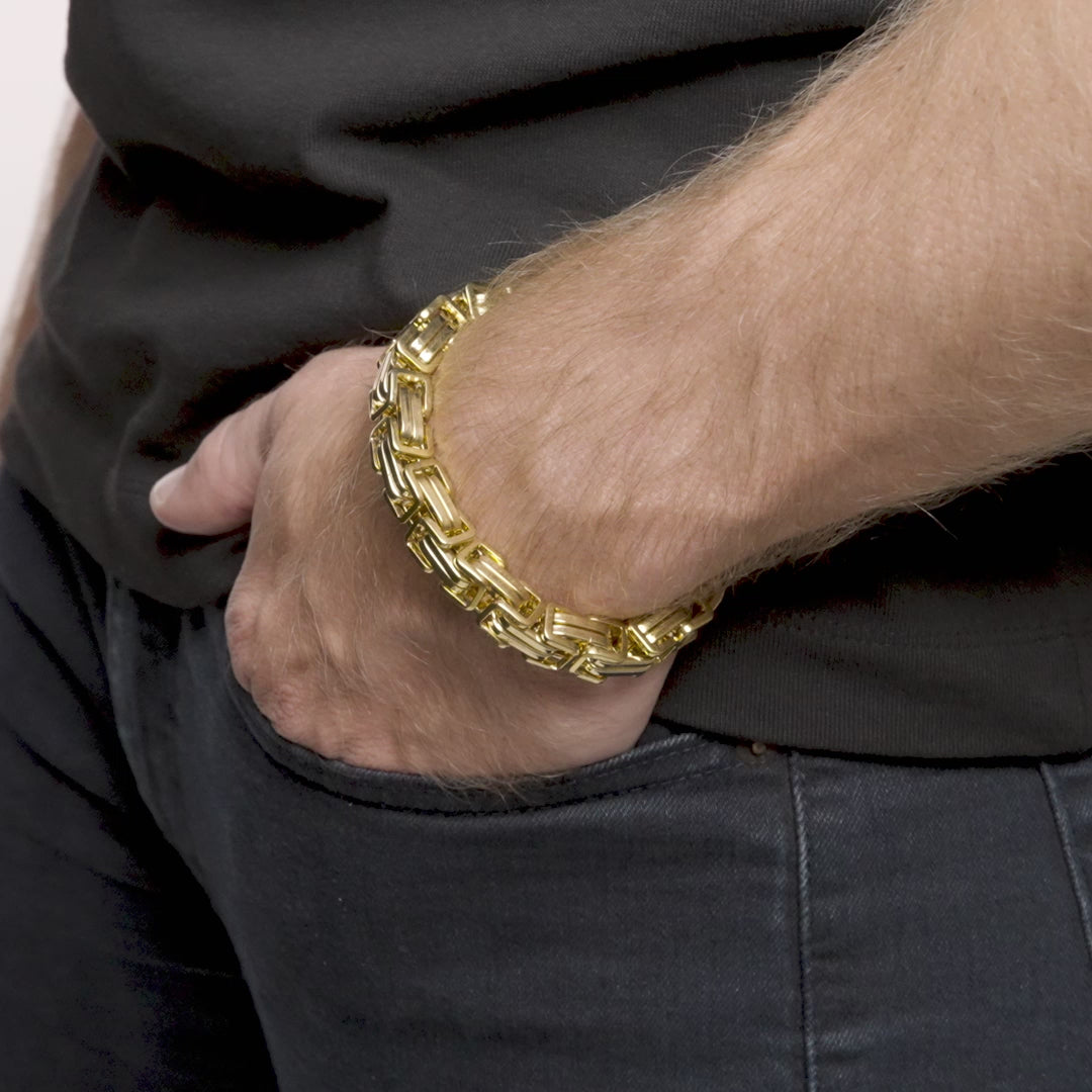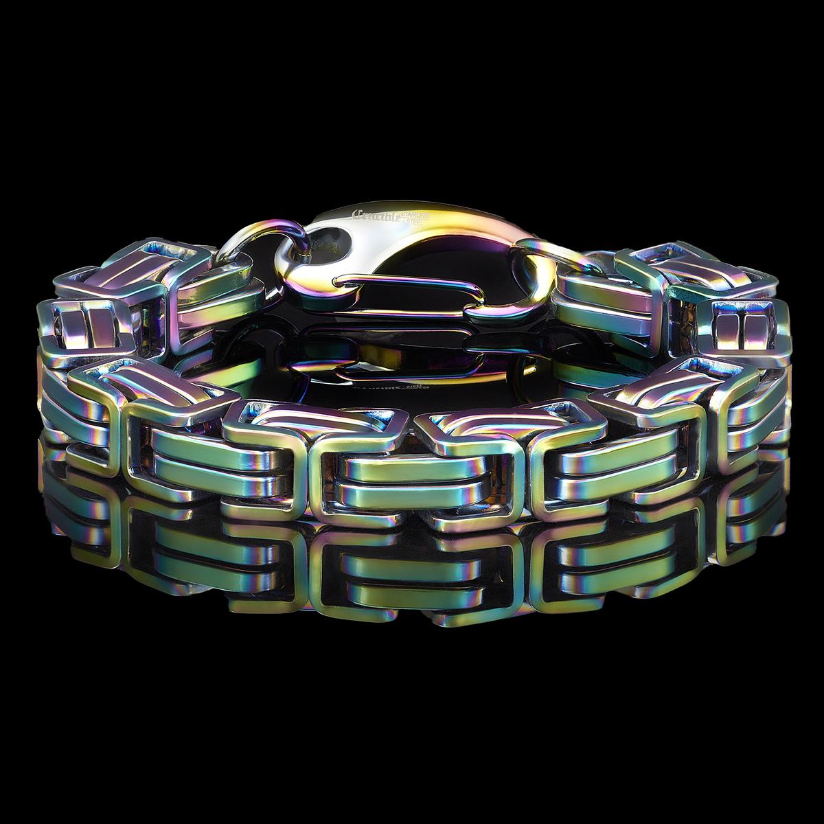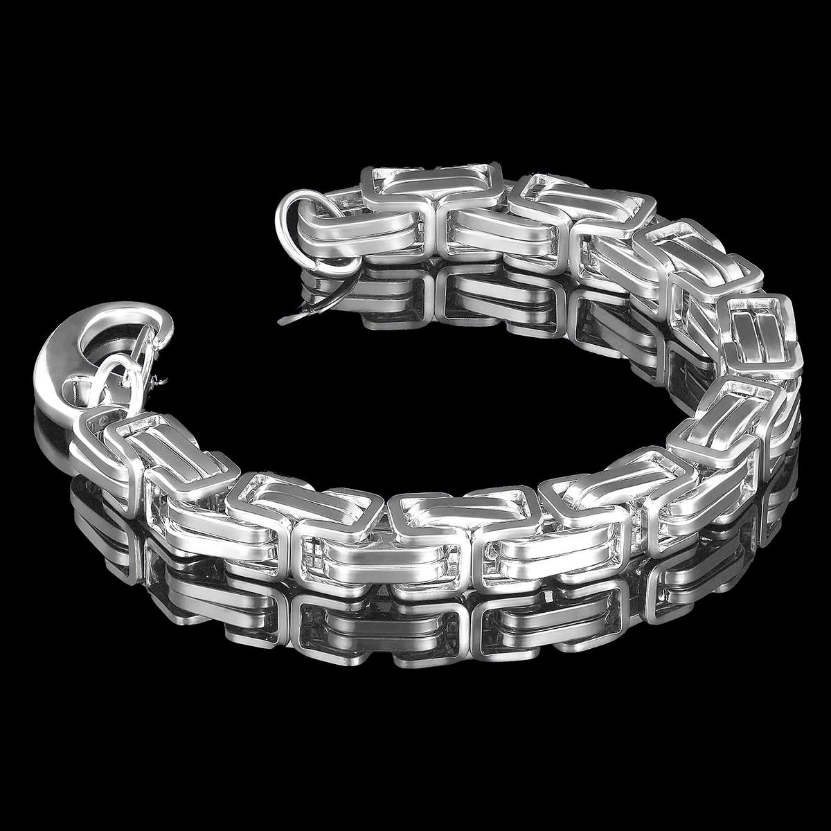 Add this stylish stainless steel Byzantine chain bracelet to your choice of daily wear. The byzantine chain offers a classic chain style yet modernized design with its wide width and an oversized clip lobster closure.