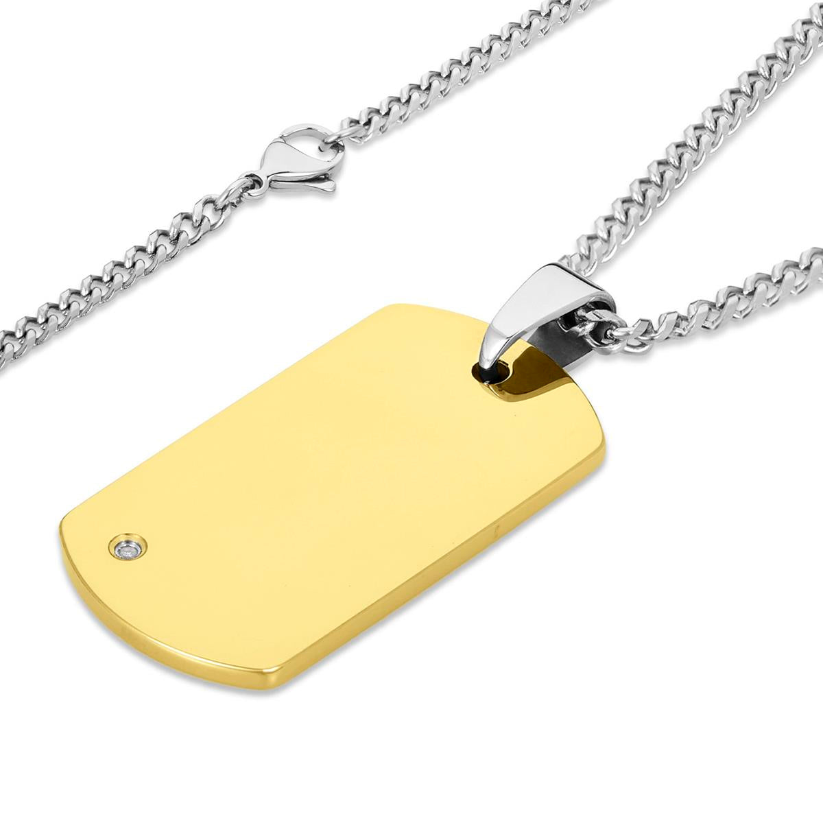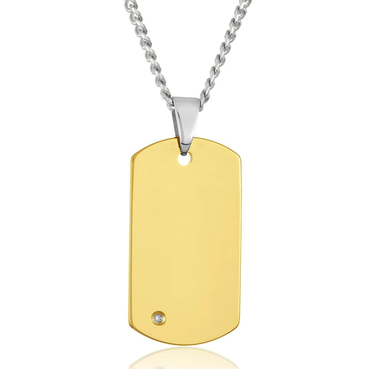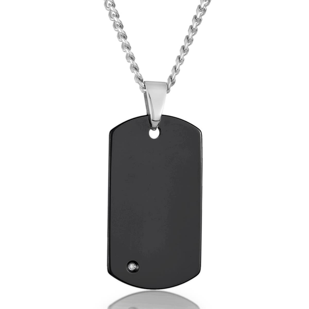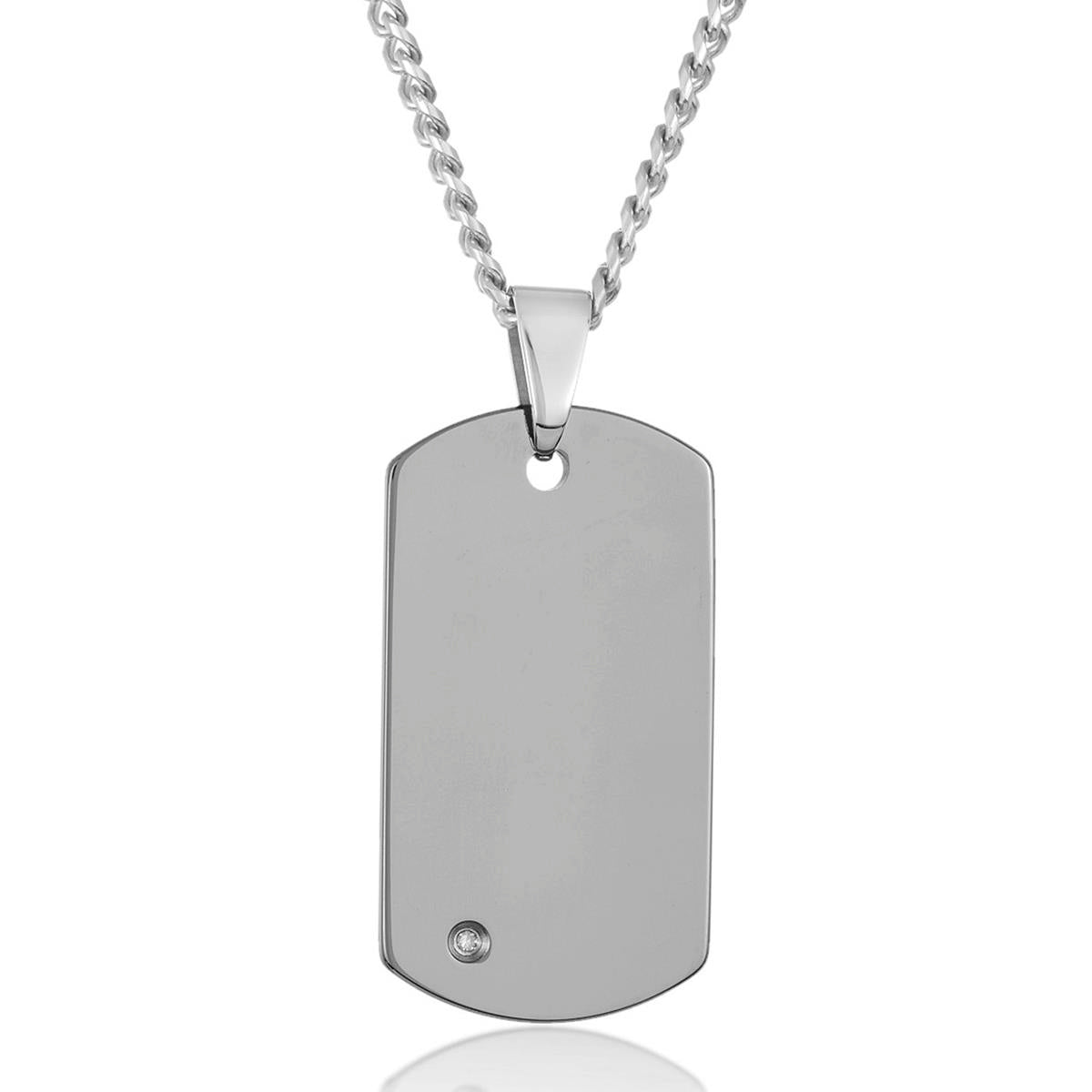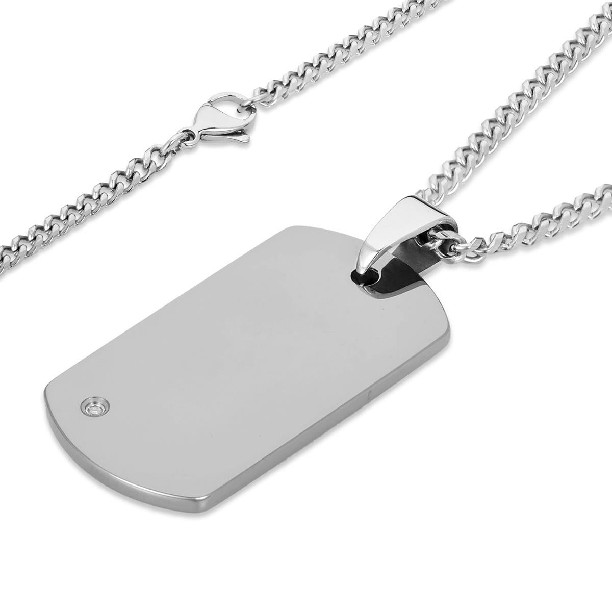 Crucible Men's Polished Diamond Dog Tag Tungsten Carbide Necklace