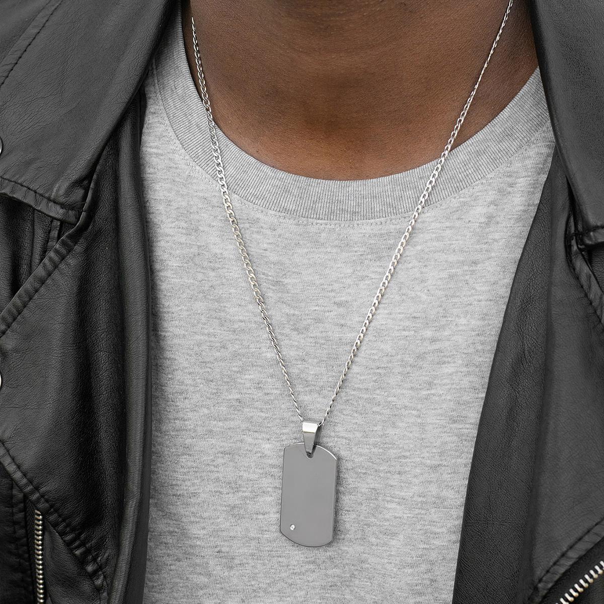 A lustrous dog tag necklace will add an element of charm to a casual outfit. Crafted of tough tungsten carbide, this pendant will resist damage from dings, dents, and scratches, and this shiny piece can easily be coordinated with other jewelry.